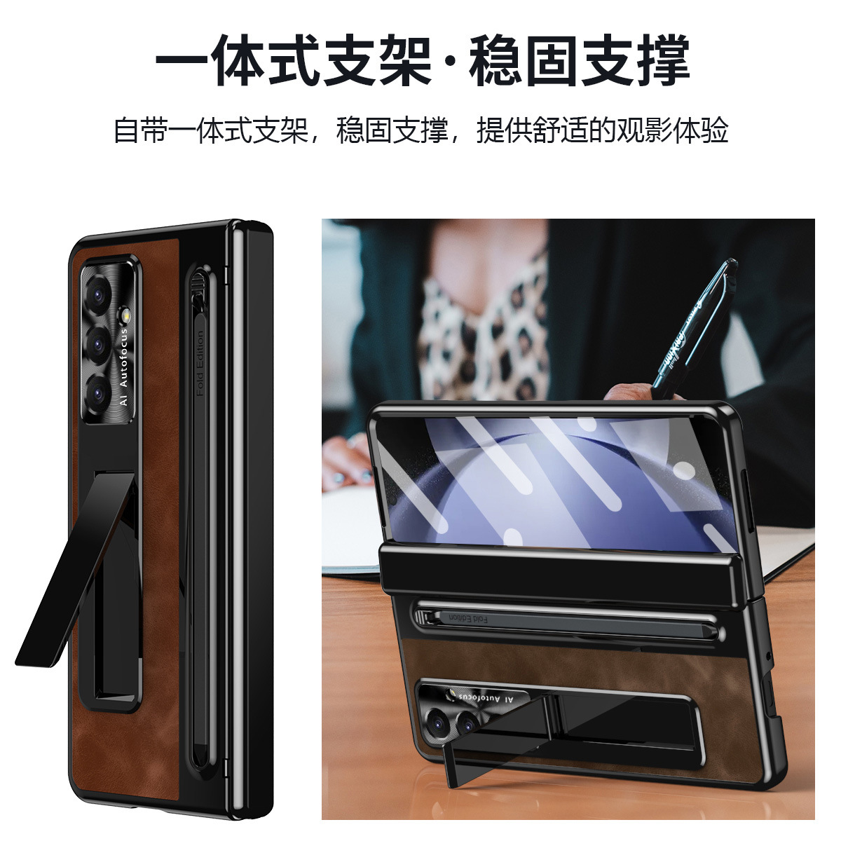适用Galaxy Z Fold 7复古爵士手机壳fold7皮纹弹压笔槽支架保护套