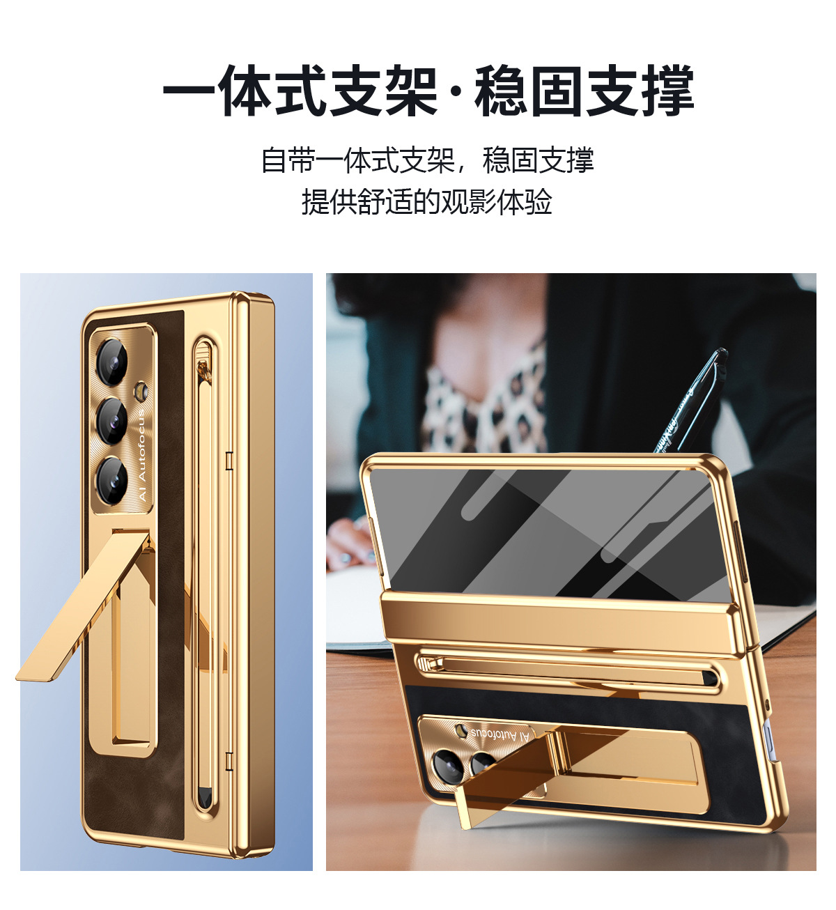 三星Galaxy Z Fold 7电镀虹星手机壳fold7虹星皮革笔槽保护套