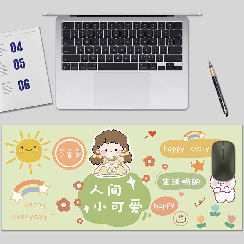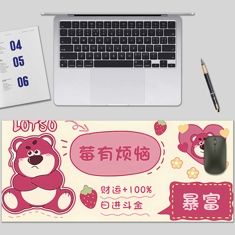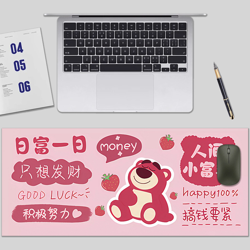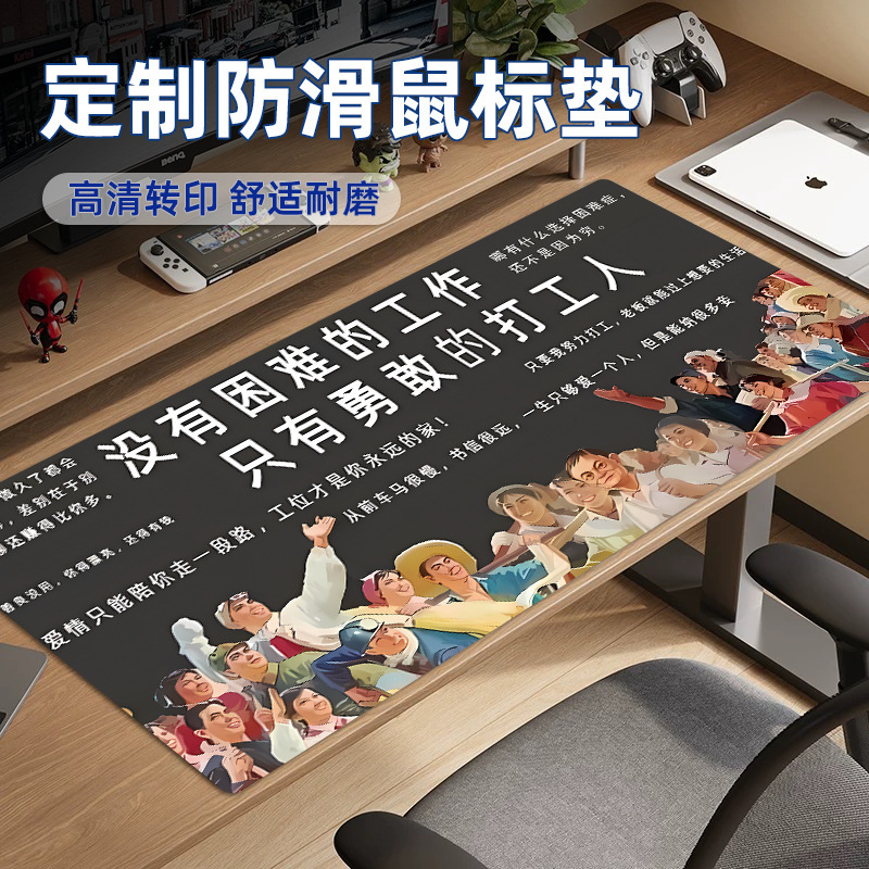 鼠标垫卡通励志超大加厚防滑鼠标垫可印logo彩色锁边桌垫