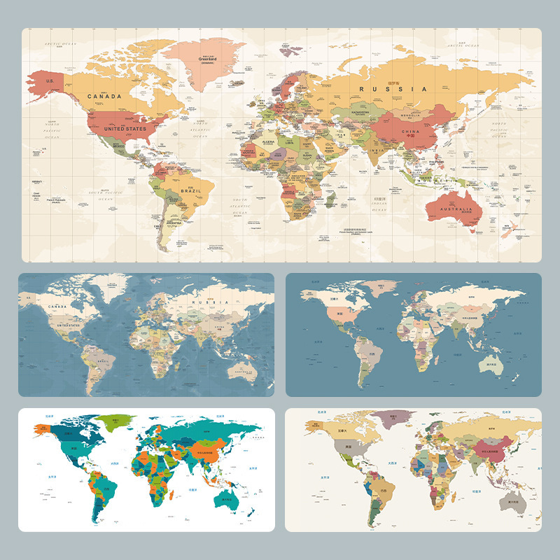 超大号键盘鼠标垫世界地图电脑logo办公桌垫加厚锁边书桌垫滑鼠垫