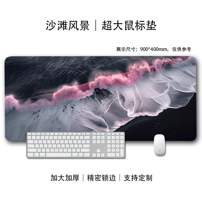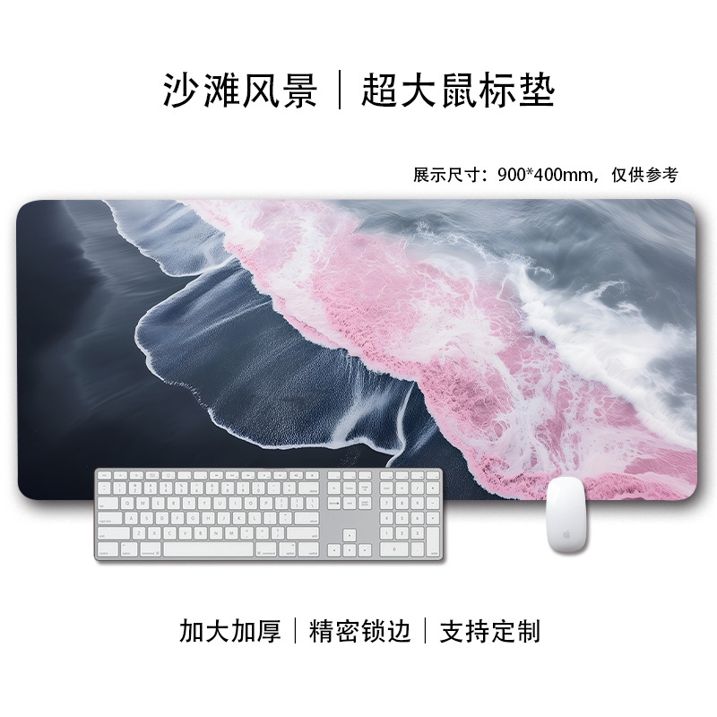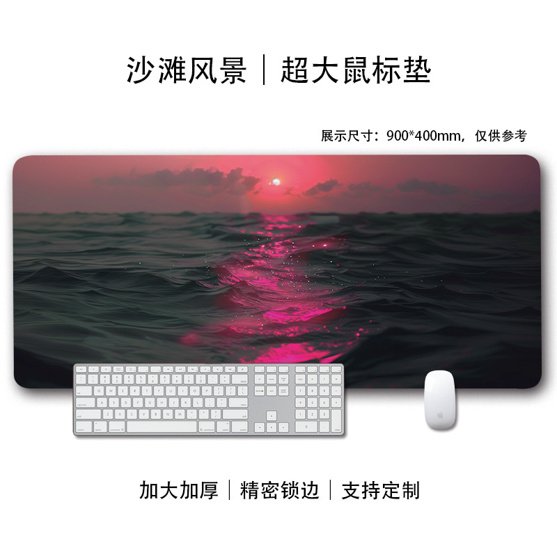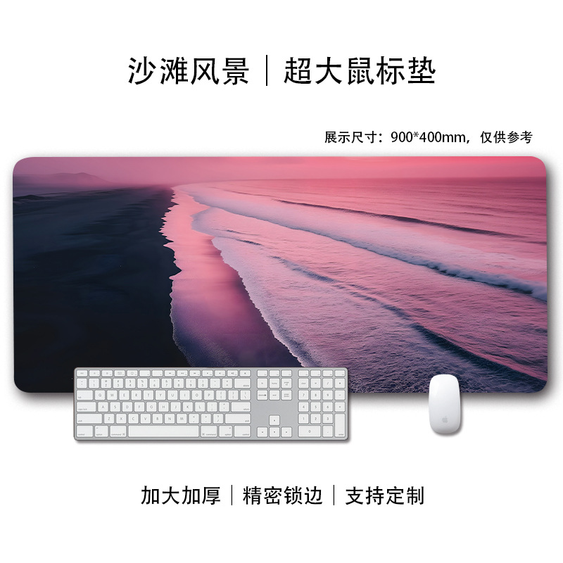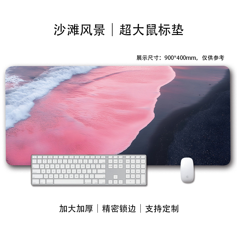 高颜值黑粉高级沙滩风景鼠标垫超大号宿舍游戏办公电脑键盘垫桌垫