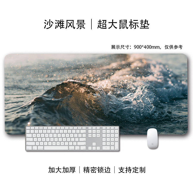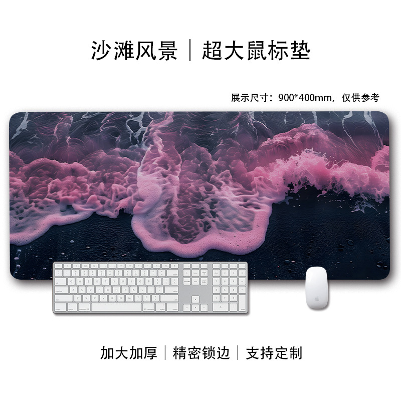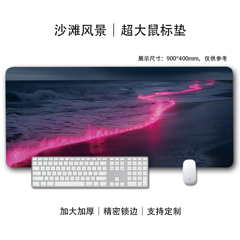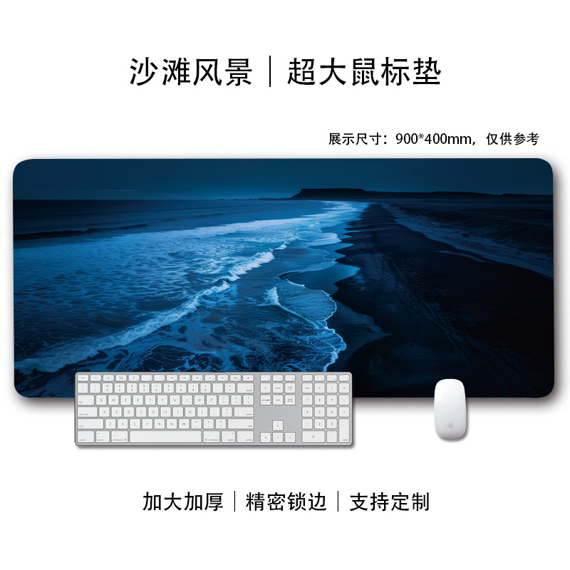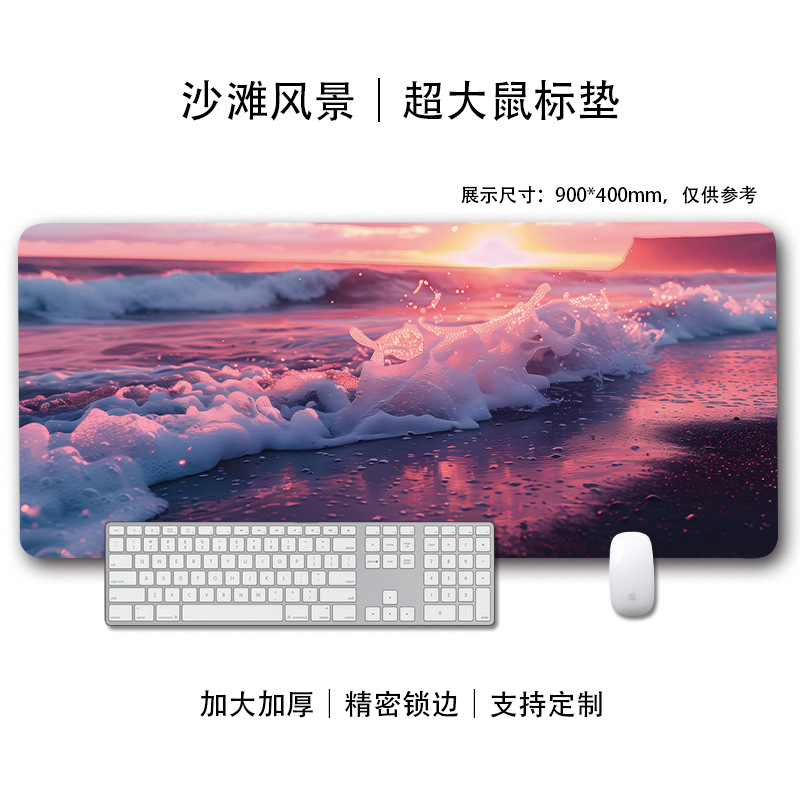 高颜值黑粉高级沙滩风景鼠标垫超大号宿舍游戏办公电脑键盘垫桌垫