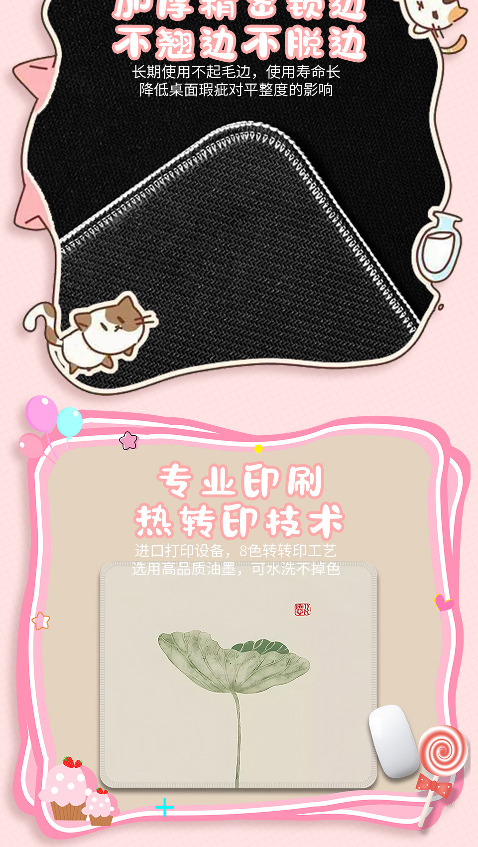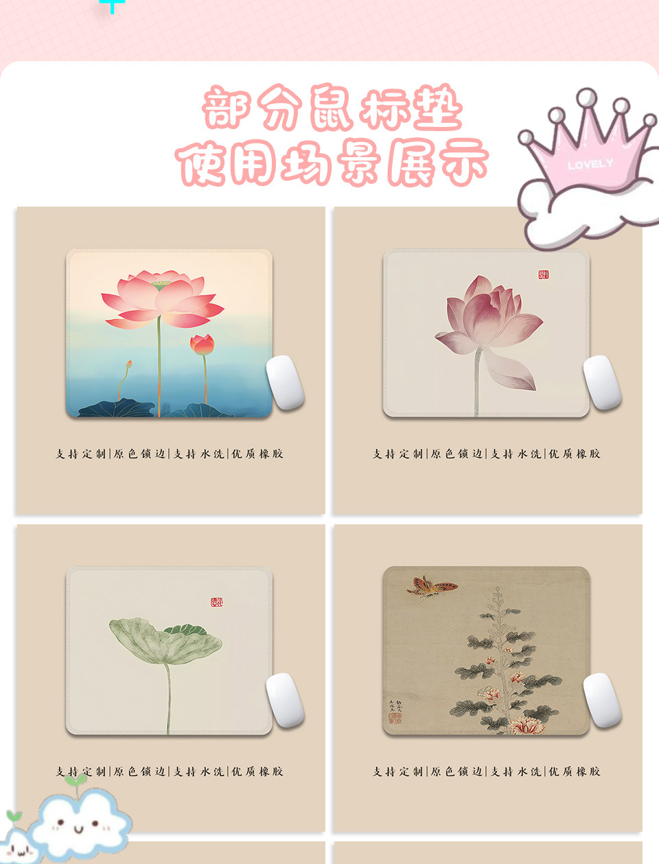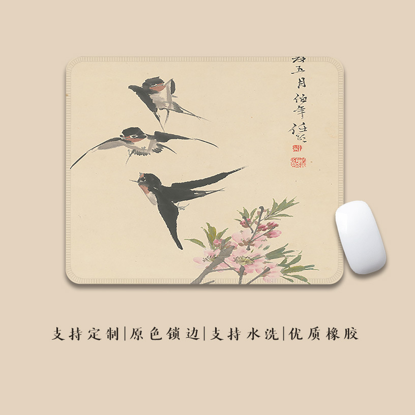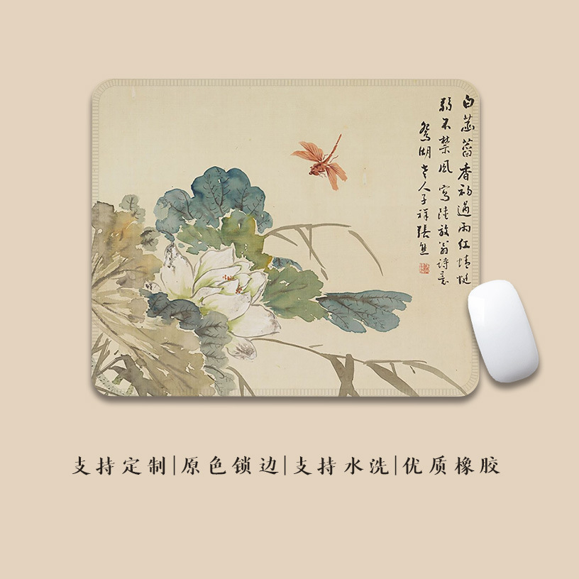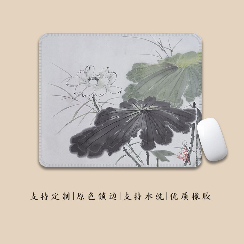 鼠标垫方形古风墨水画键盘垫加大加厚锁边办公桌垫
