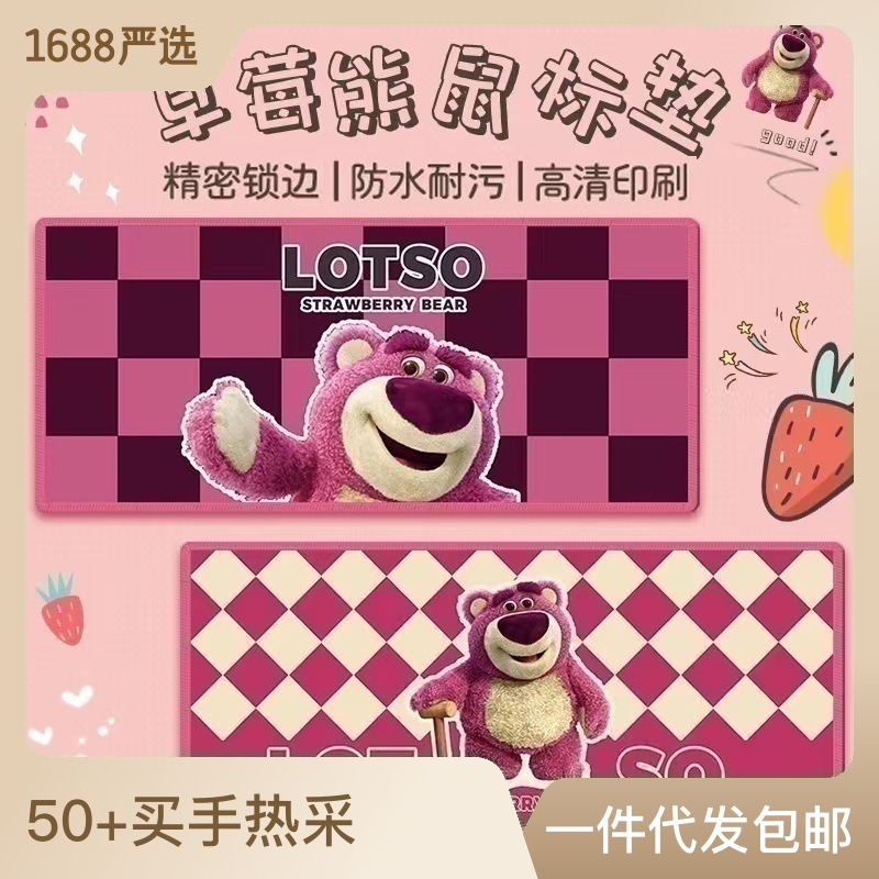 鼠标垫草莓熊大号垫卡通可爱电脑键盘垫热转印锁边办公桌垫超大号