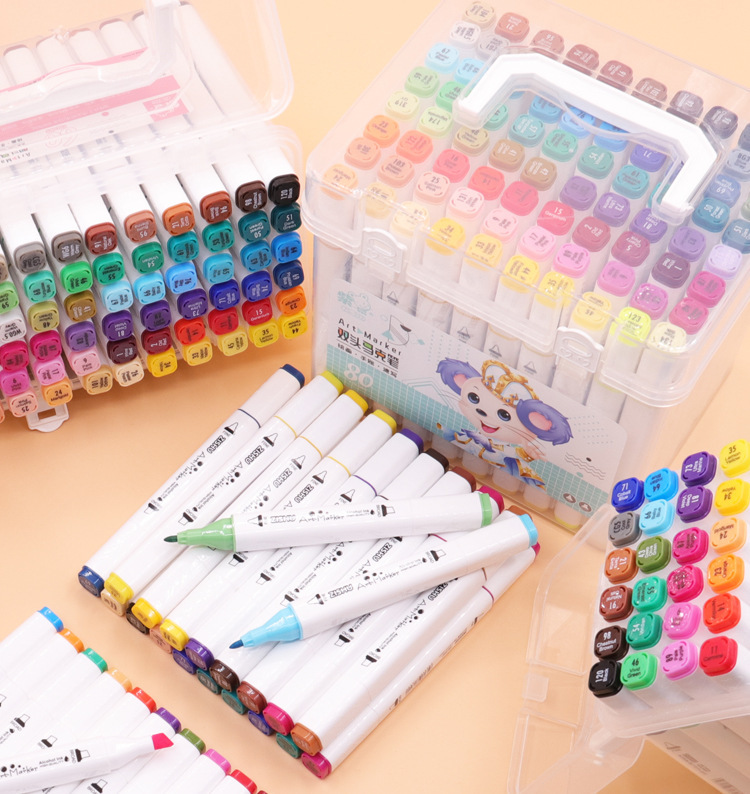 双头马克笔套装油性多色勾线笔学生手绘画水彩笔盒装儿童画笔