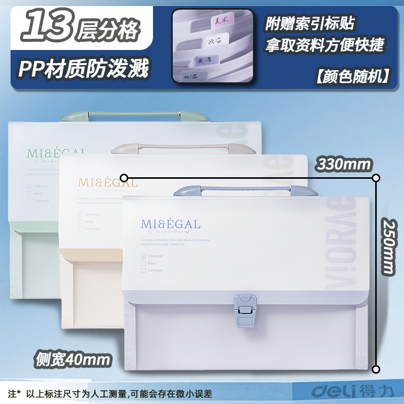 得力风琴包学生试卷收纳袋13格学科收纳分科带索引标贴风琴文件夹