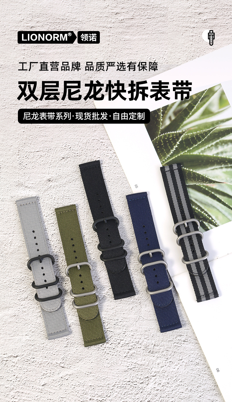适用于三星watch6尼龙快拆表带 双层尼龙帆布手表表带华为GT3表带