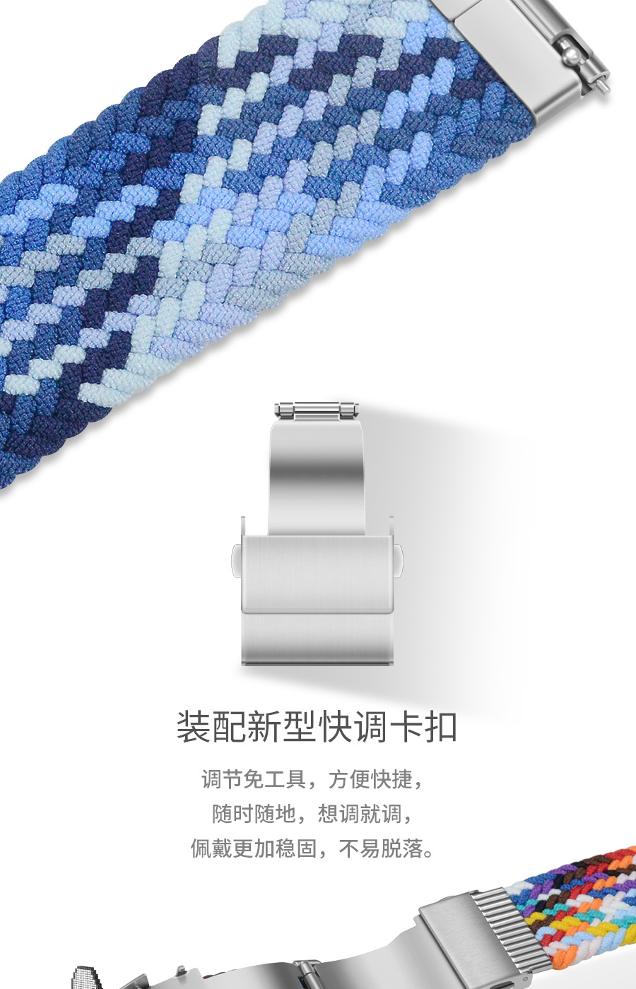 适用华为WatchGT2/3Pro三星小米智能手表带弹力尼龙编织表链20mm