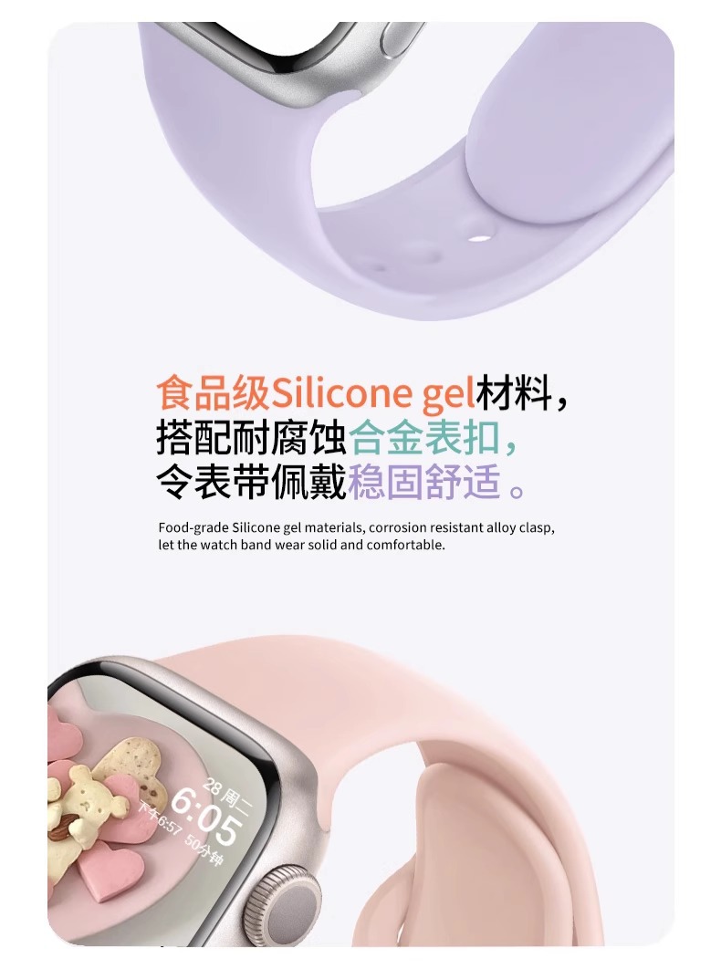 适用iwatchS10经典款硅胶运动表带苹果AppleWatch89SE智能手表带