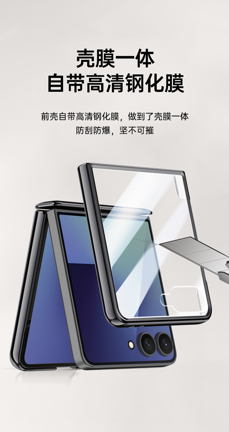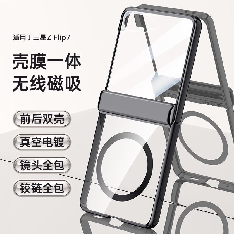 三星 flip7手机壳磁吸铰链壳膜一体电镀flip7保护套