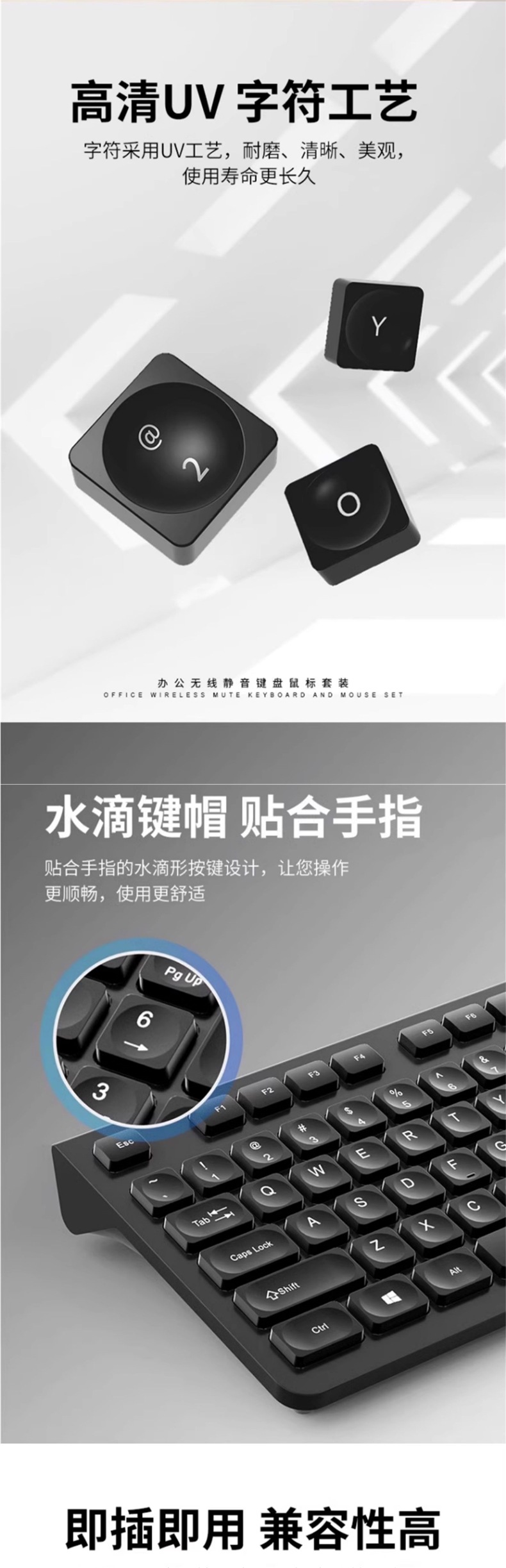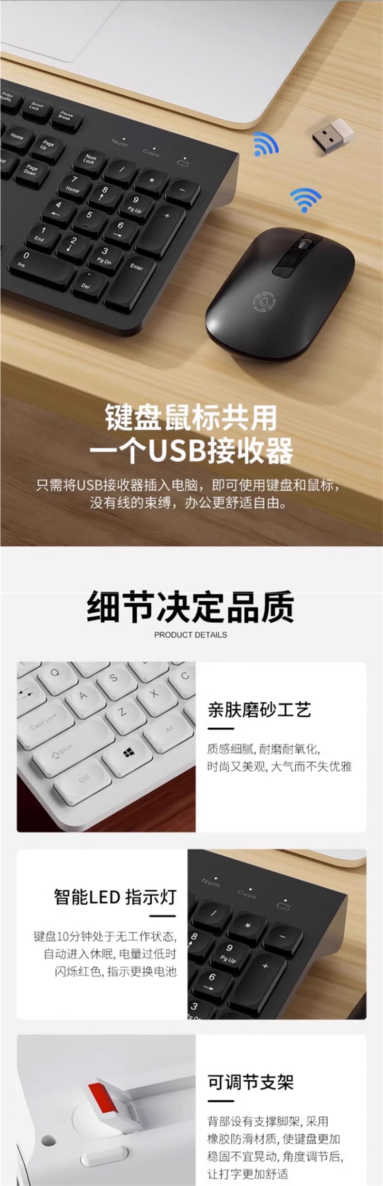 静音按键-黑色/无线键鼠套装【手感真的好/静音/持久续航】-是