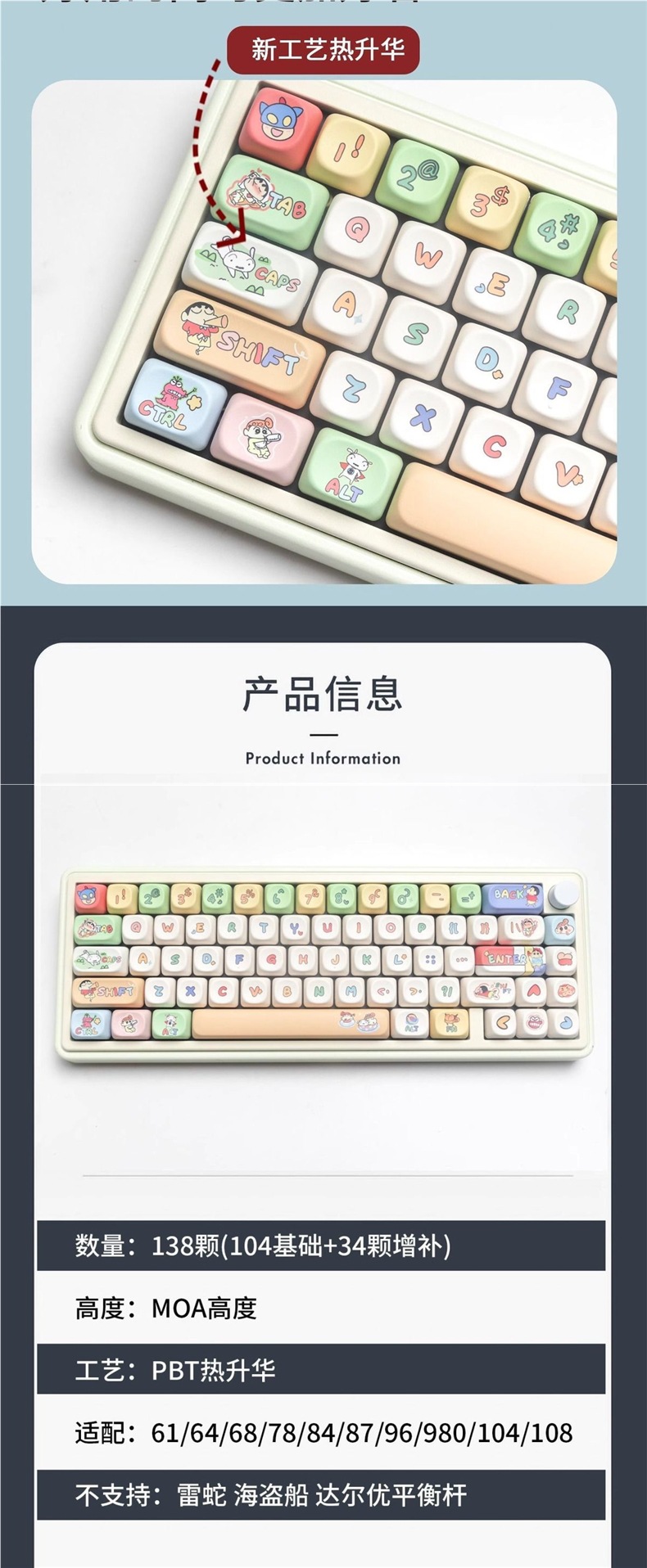可爱F87HI蜡笔小新754F热升华高度99动漫K99HI8键帽