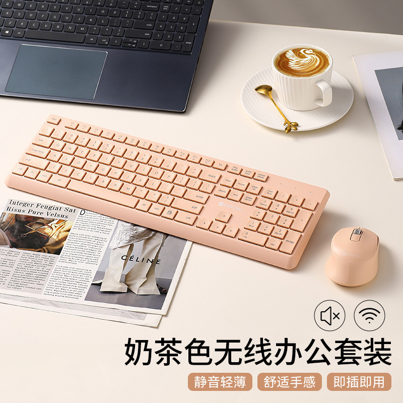 - 奶茶色/无线键鼠套装【手感真的好/超薄静音/持久续航】