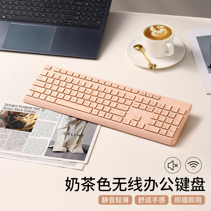- 奶茶色/无线单键盘【手感真的好/超薄静音/持久续航】