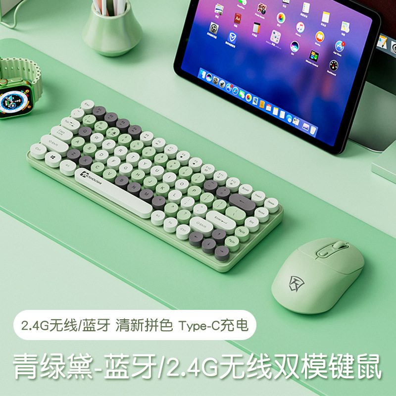 - 青绿黛2.4G+蓝牙双模键盘+无线鼠标