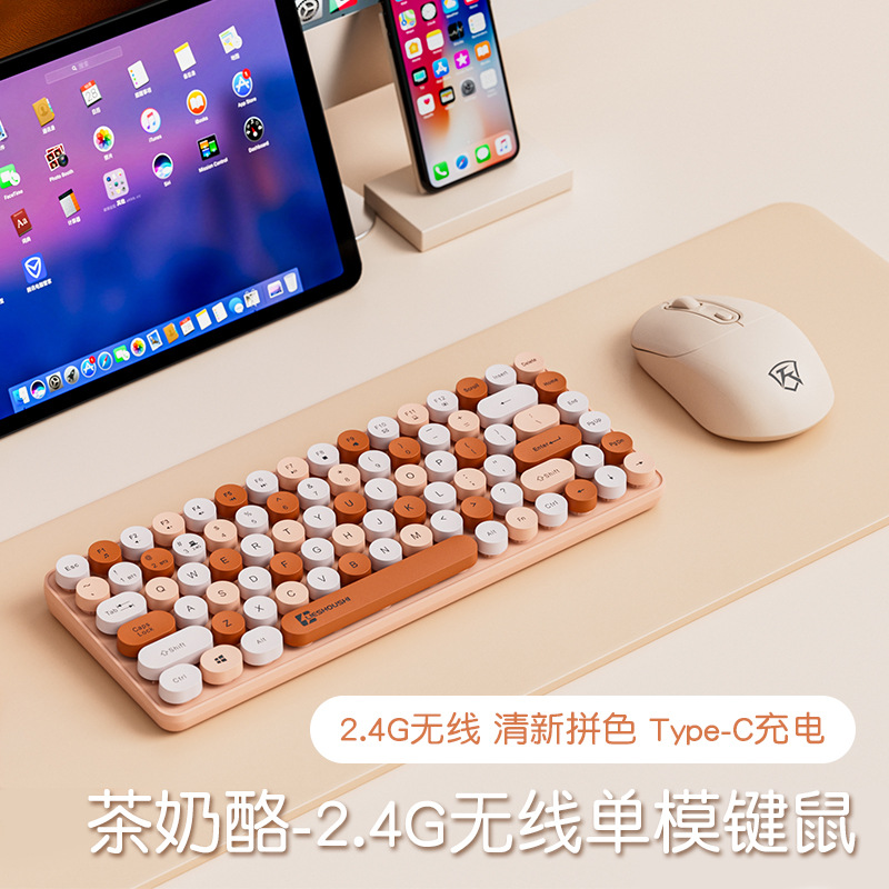 - 茶奶酪2.4G单模键盘+无线鼠标