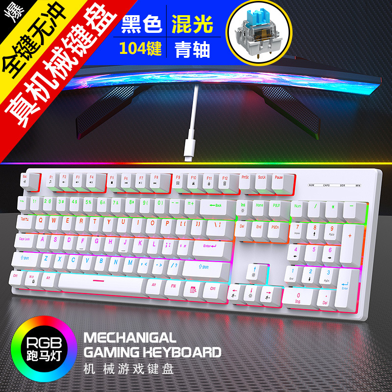 typec接口插线青轴104键机械键盘电竞游戏RGB彩灯游戏机械键盘