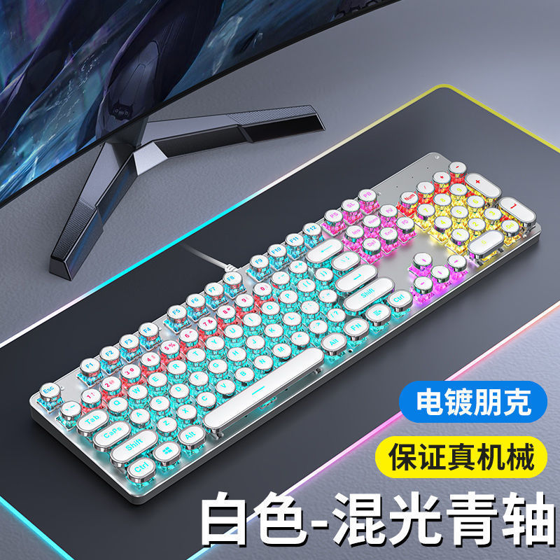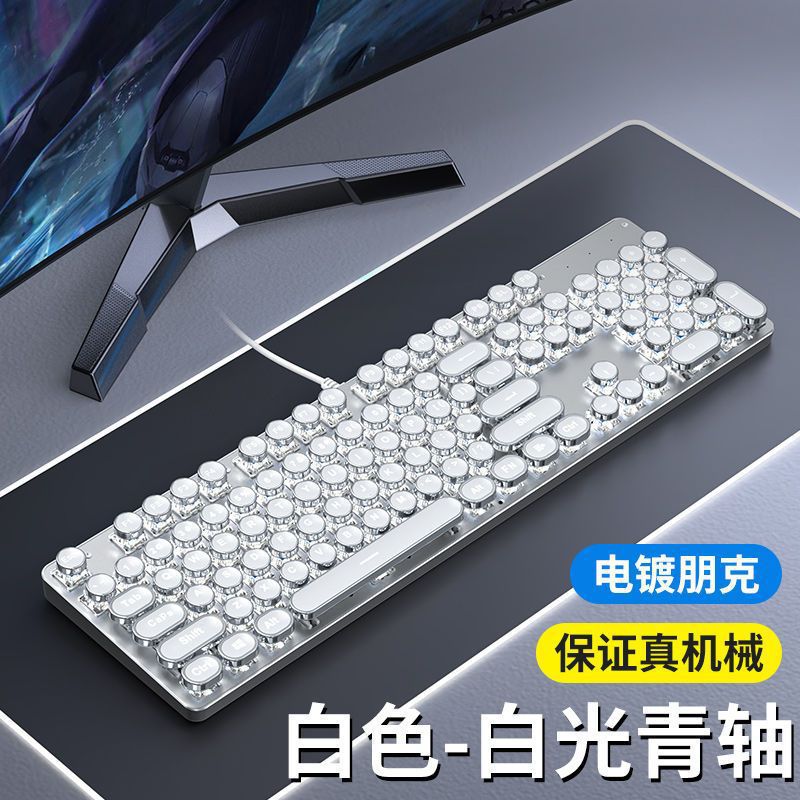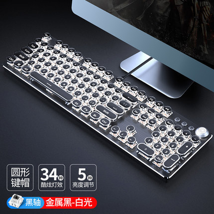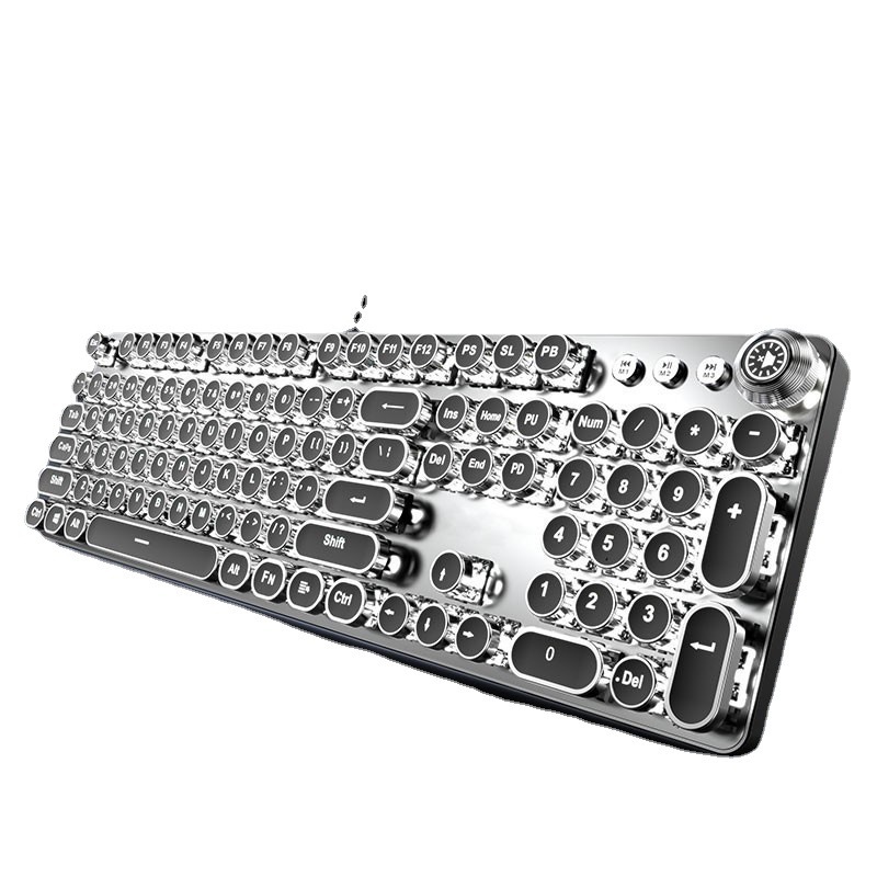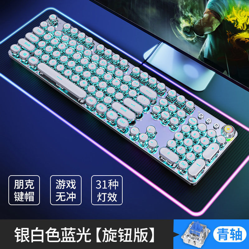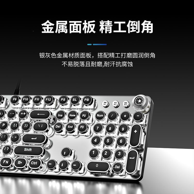 有线键盘TK100复古蒸汽朋克游戏机械键盘旋钮青轴游戏电竞键盘