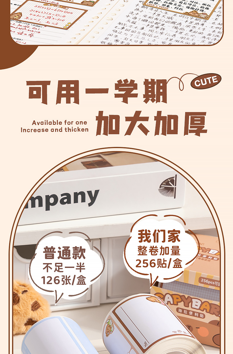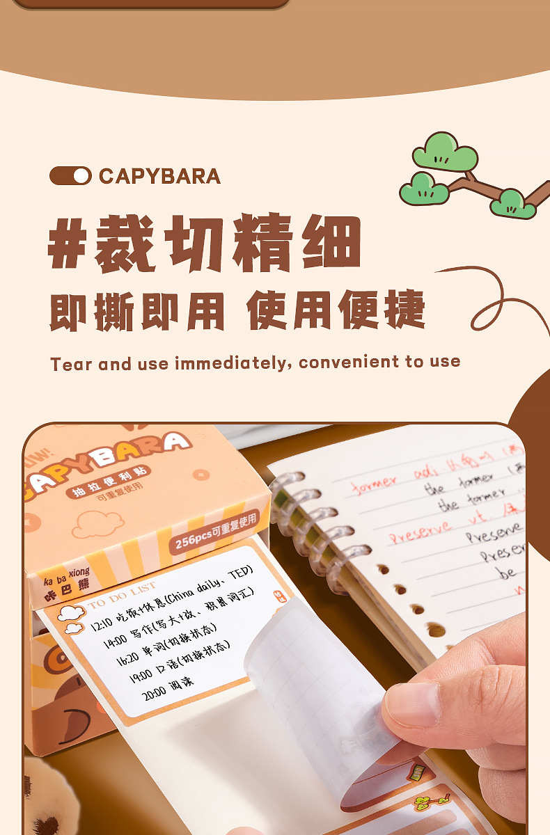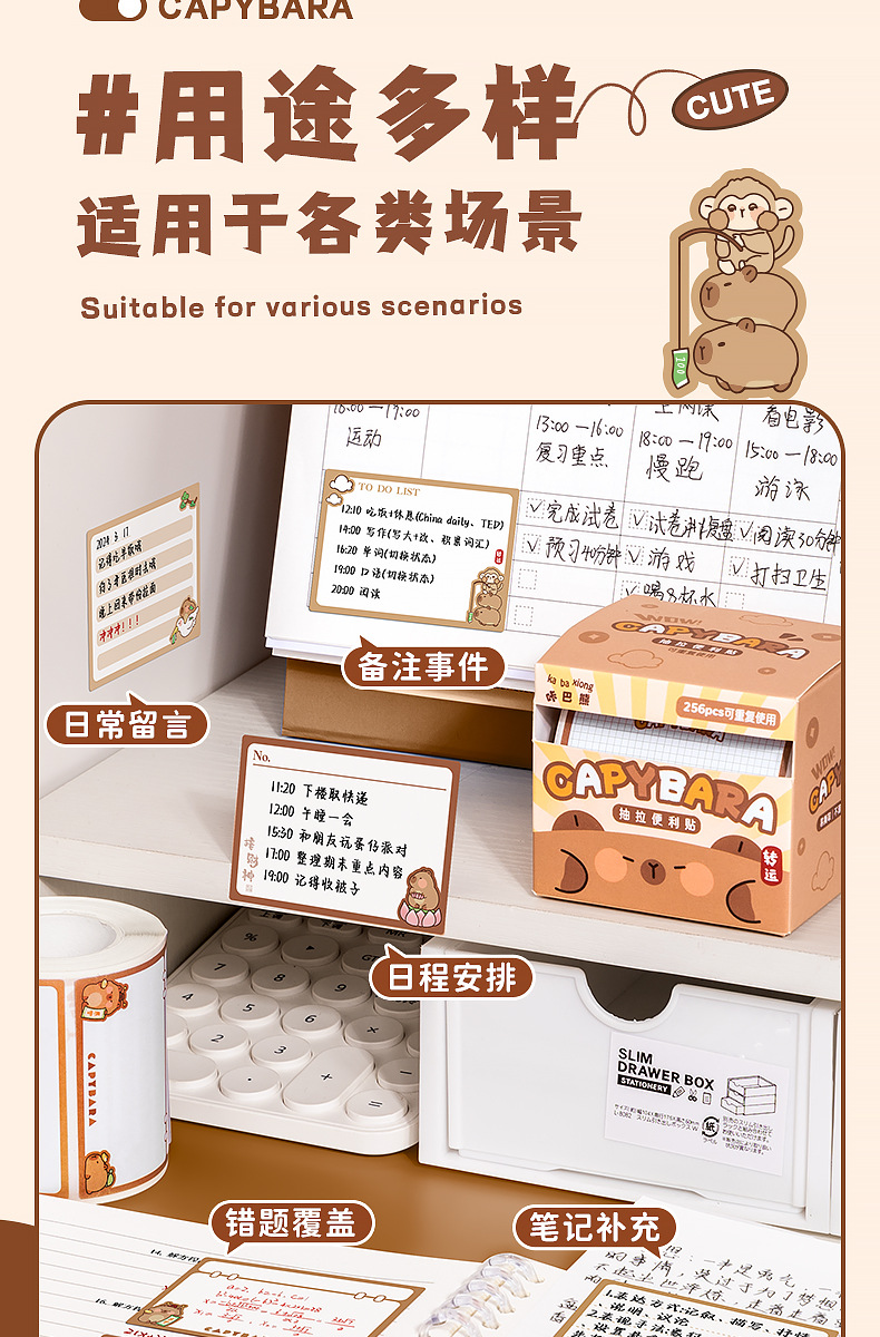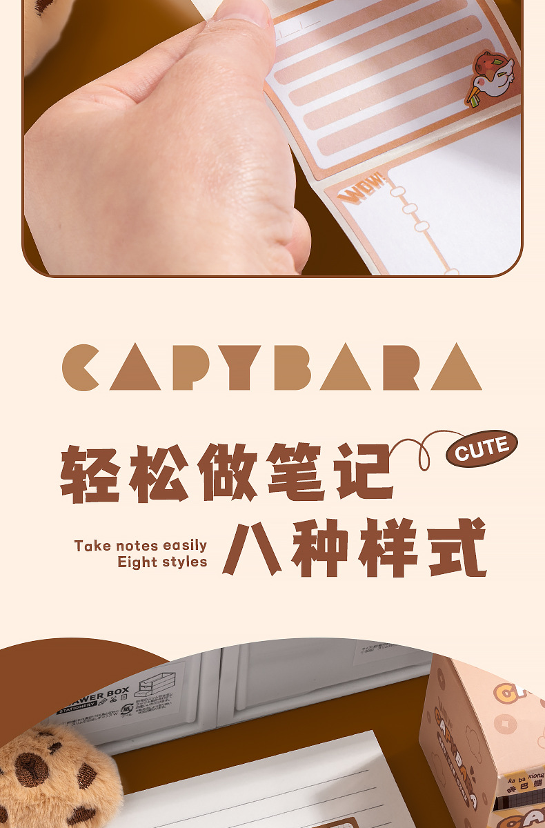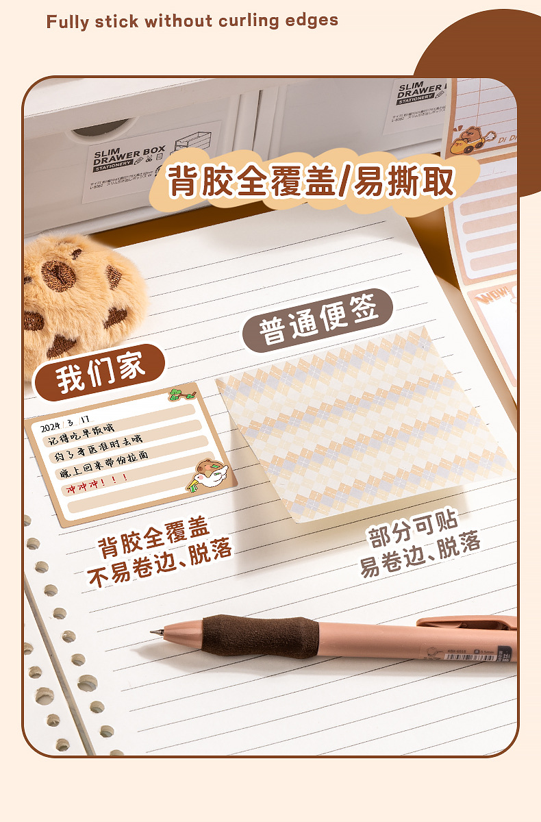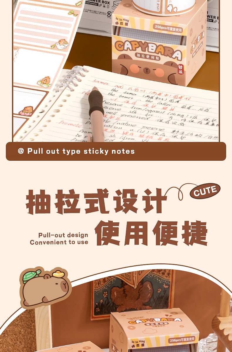 咔巴熊卡皮巴拉抽拉式便利贴高中生错题便签纸初中生专用考研全粘