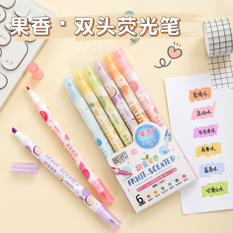 水果香味荧光笔双头学生手账标记笔创意可爱小清新斜头记号笔文具
