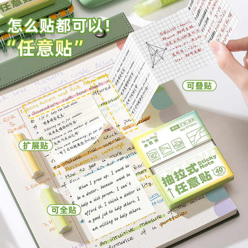 抽拉式任意贴便利贴学生用高颜值全粘错题贴办公记事贴可撕便签纸