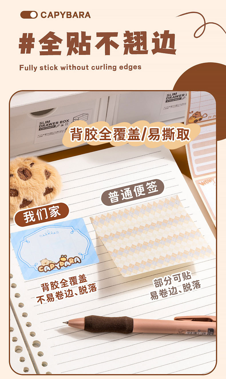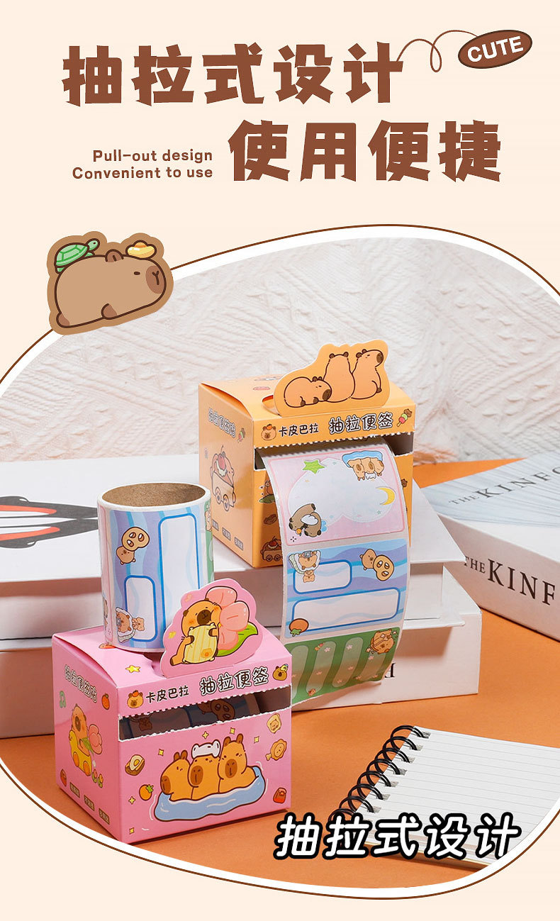卡通创意抽拉式便签贴学生手账贴纸便利贴桌面留言全贴N次便签本