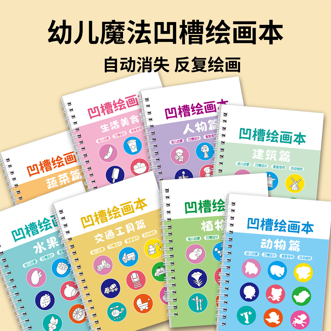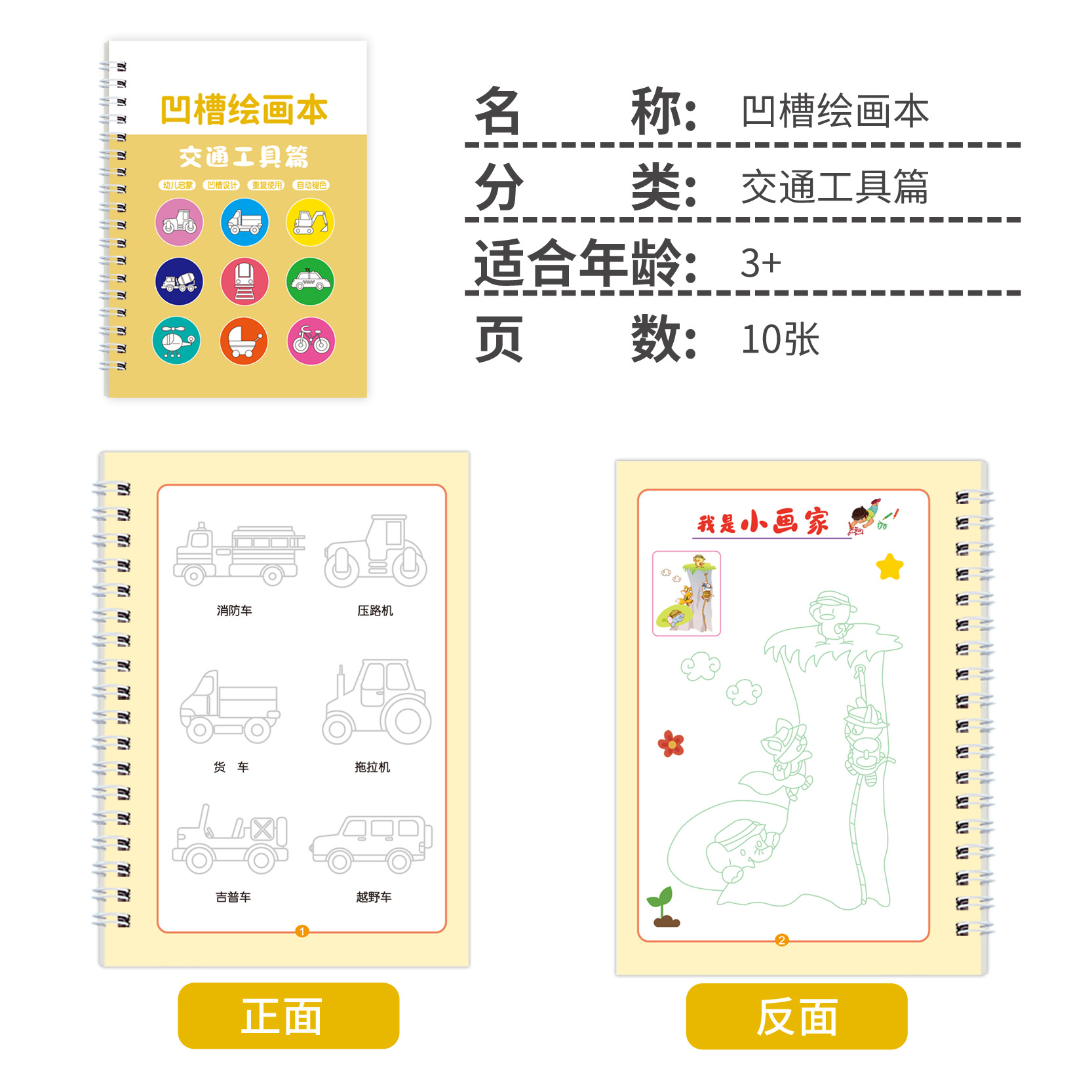 凹槽绘画本儿童控笔训练简笔画画幼儿园宝宝自动消失重复使用临摹
