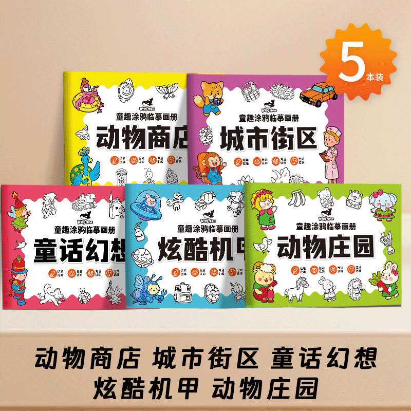 临摹画册儿童涂鸦简笔画本手绘本线稿绘画涂色幼儿园画画本卡通