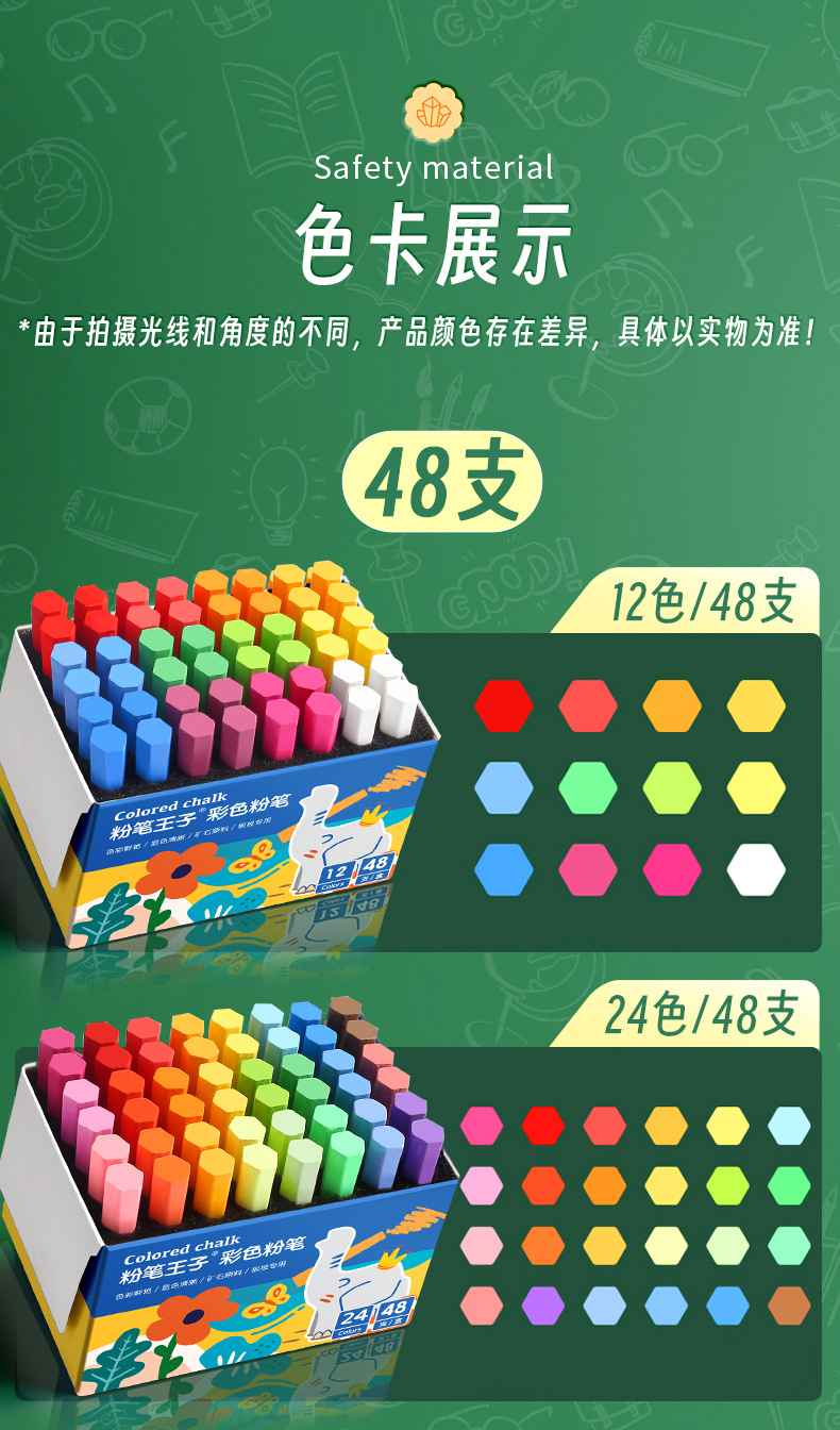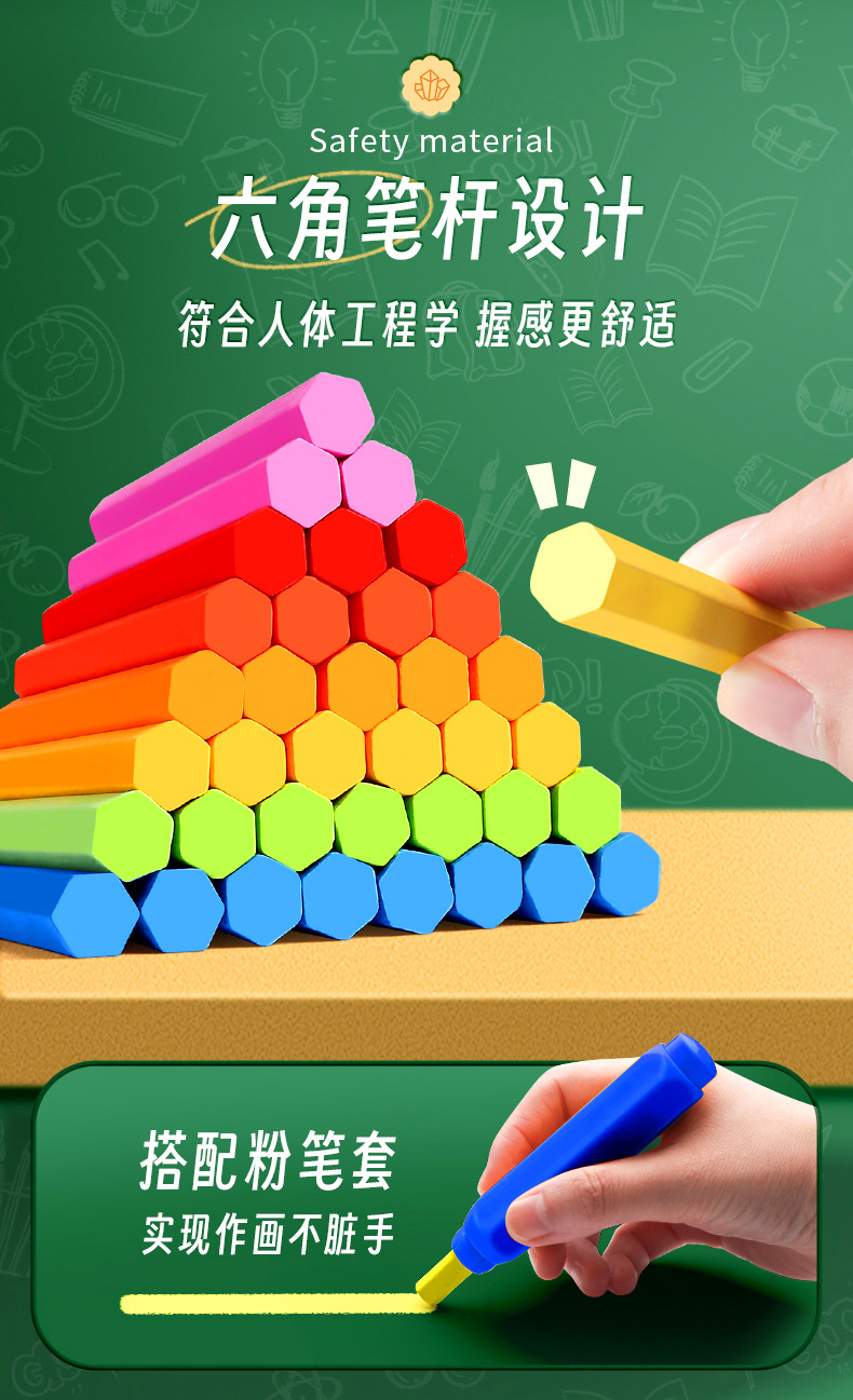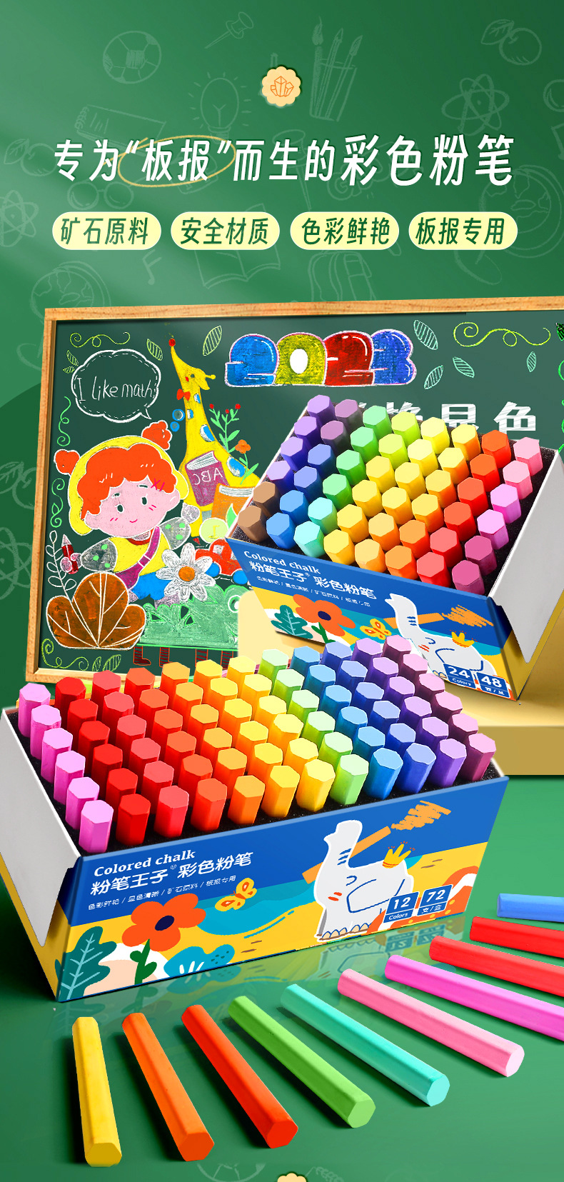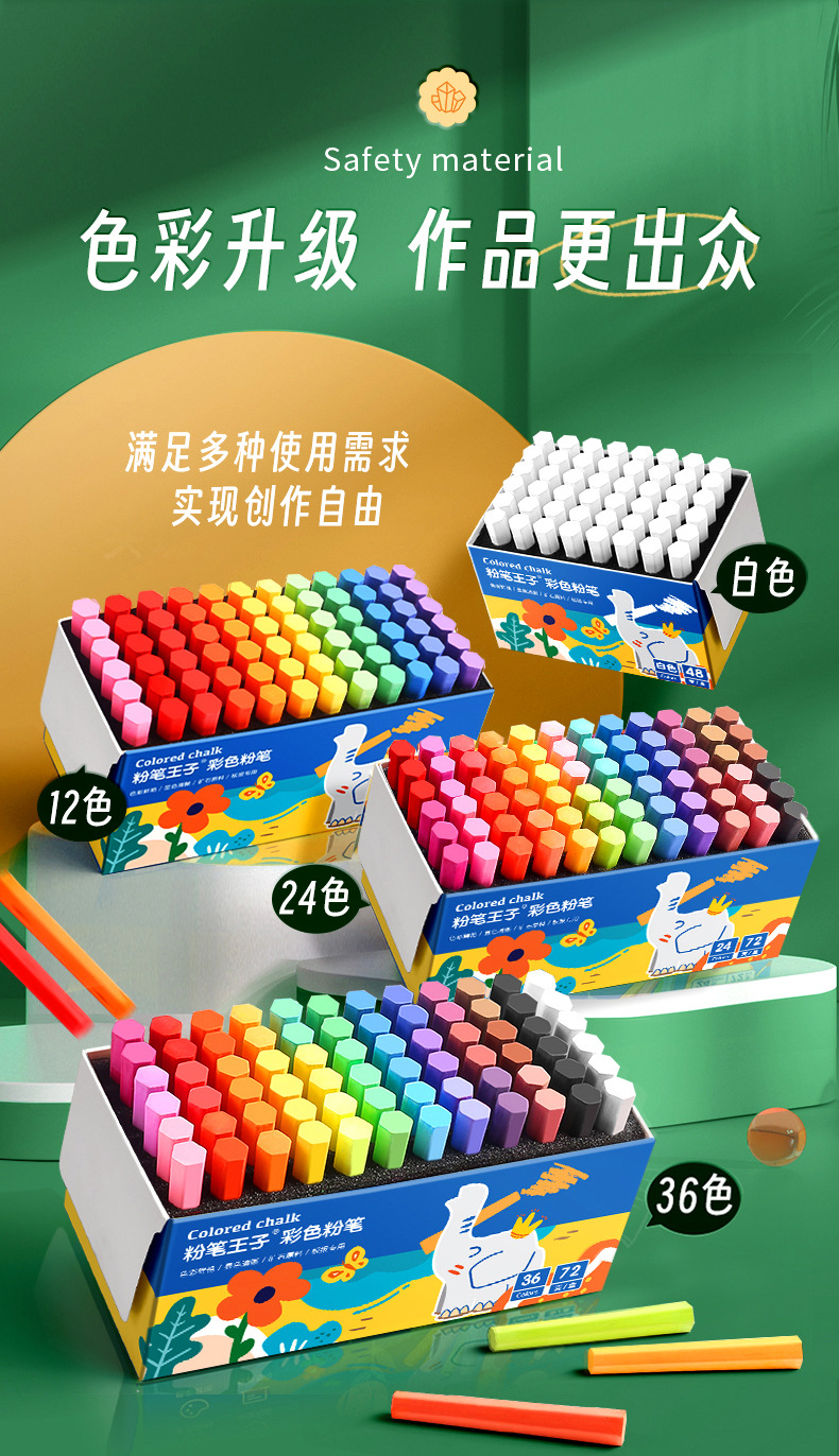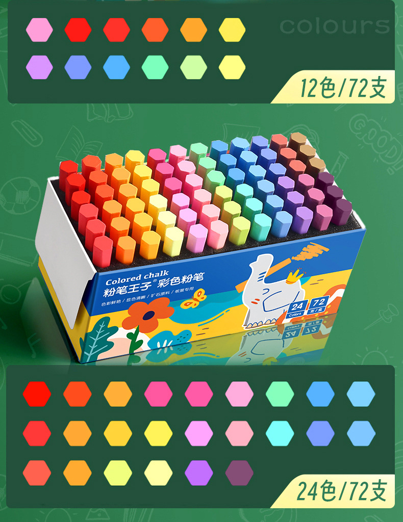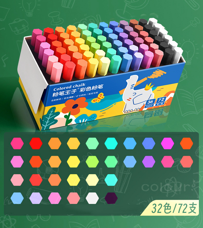 快力文36色粉笔王子彩色粉笔无尘鲜艳儿童家用教师专用手绘黑板报