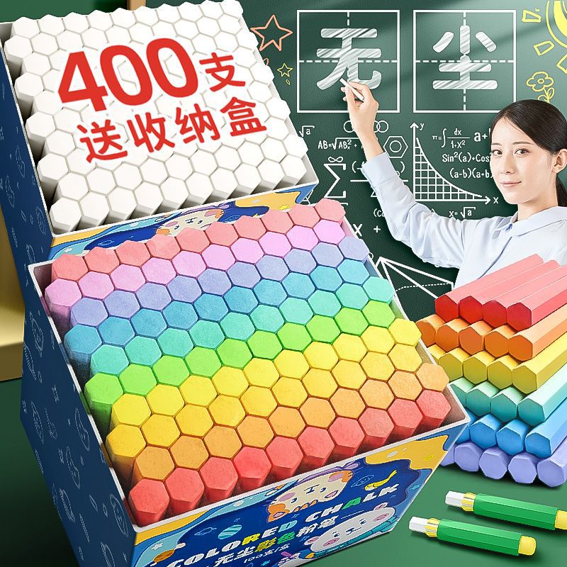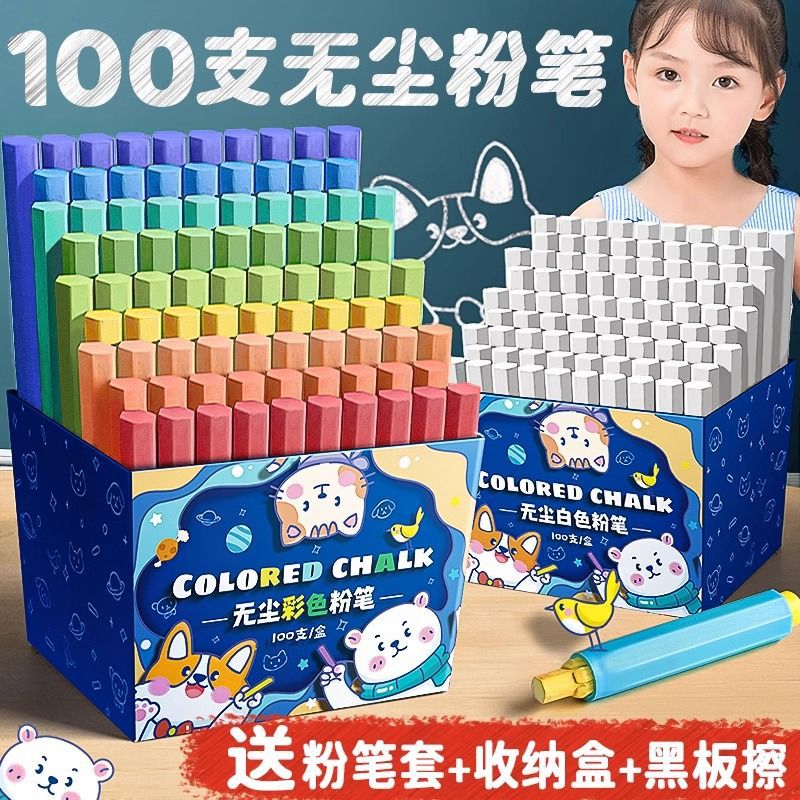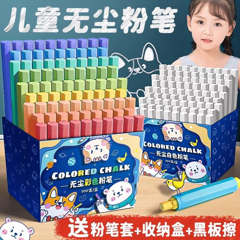 彩色粉笔多色儿童无尘画板黑板报教师用幼儿园家用教学无粉尘白色
