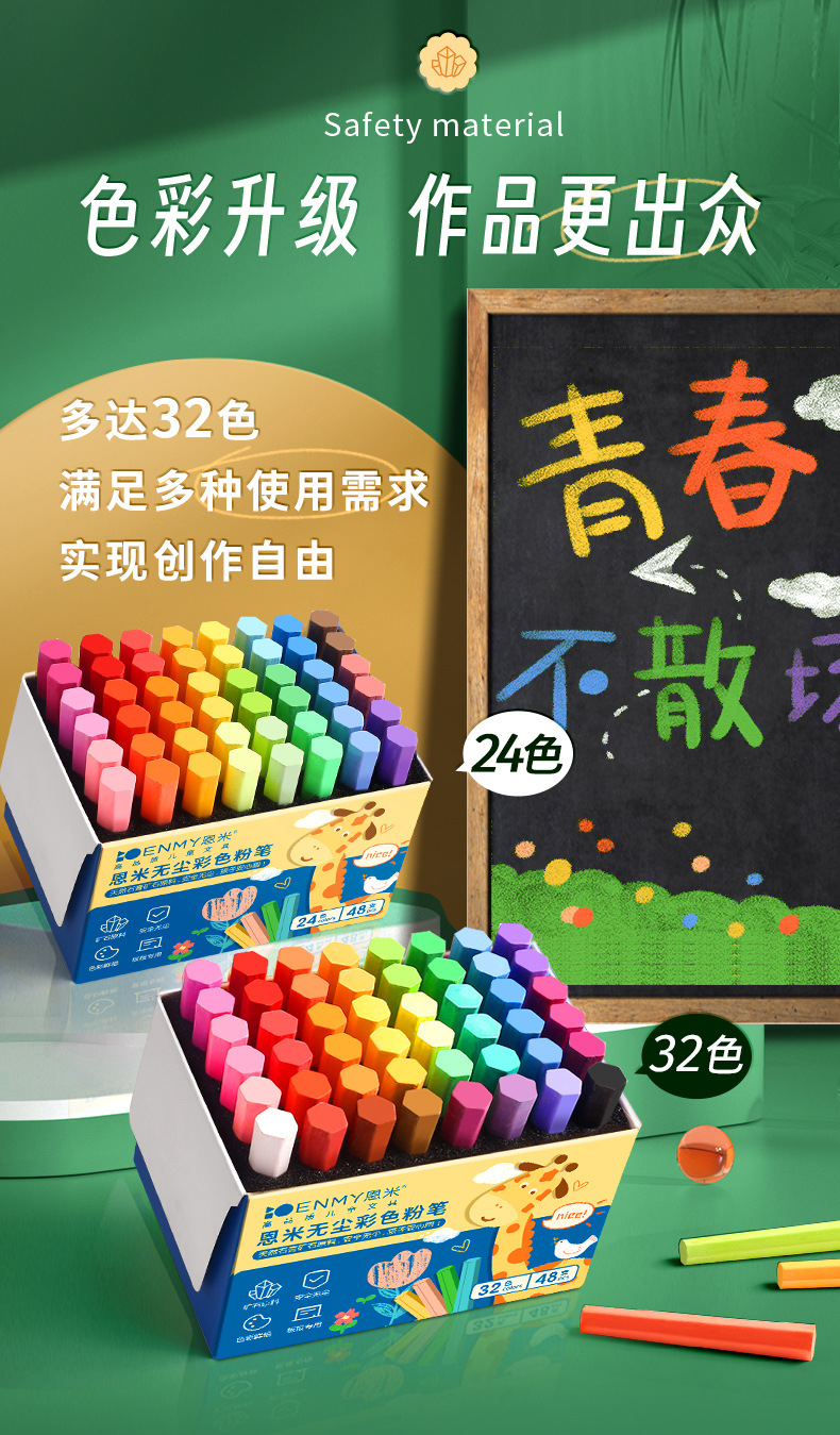 恩米无尘粉笔无毒儿童教师专用彩色水溶性粉笔黑板报家用教学白色