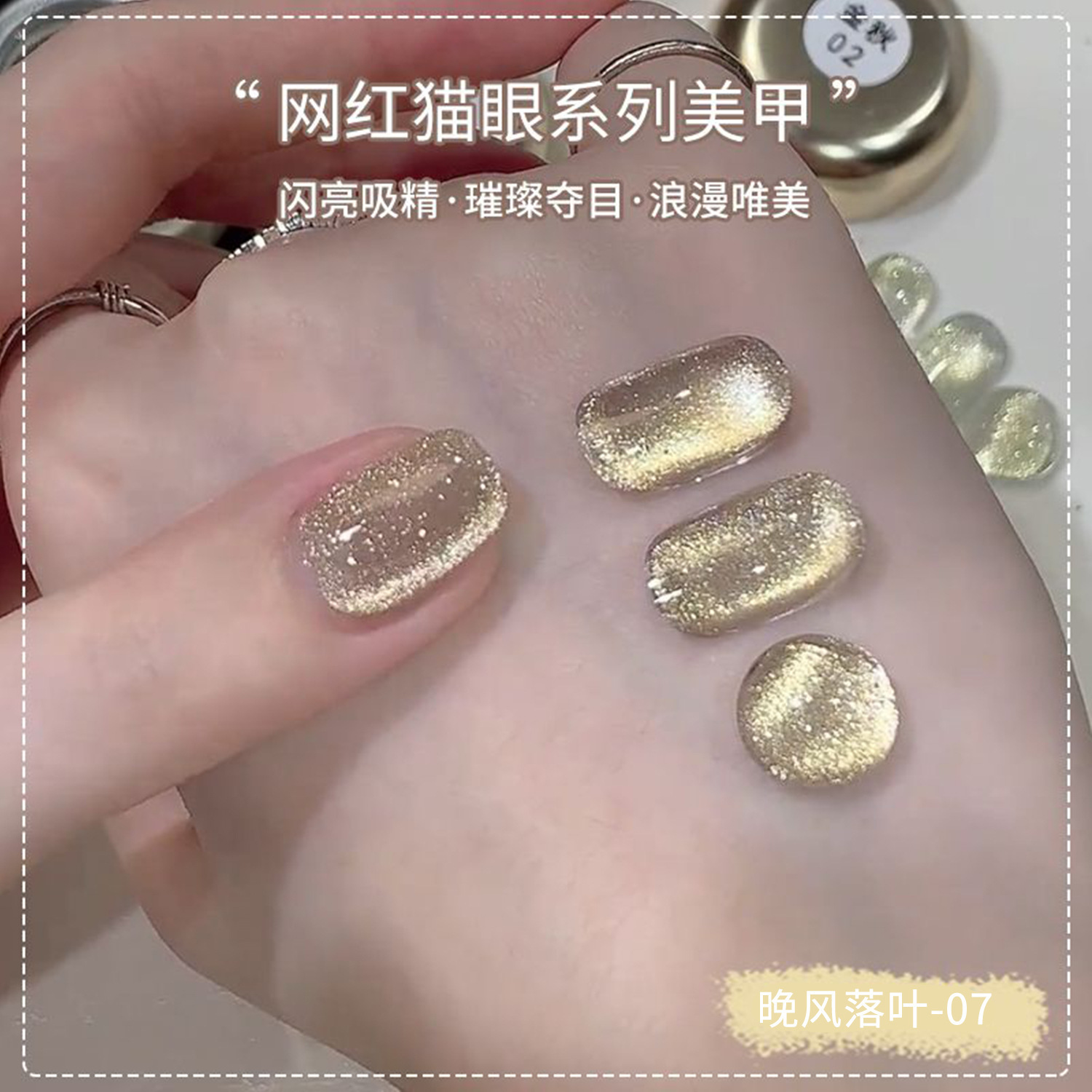 金秋晚枫落叶猫眼甲油胶秋冬款瓷白爆闪流行闪亮吸睛光疗胶美甲店