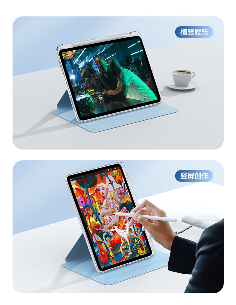 ipad10.2寸磁吸旋转10代保护套air5拆分防弯轻薄mini7透明保护套