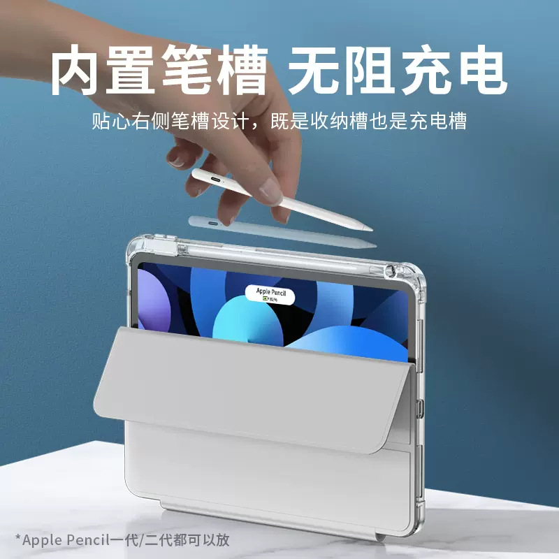 适用新款ipadair4保护套Pro11笔槽高透华为亚克力保护壳