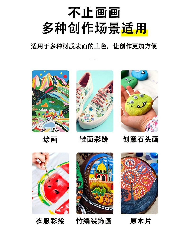 幼儿丙烯颜料DIY6色连体涂鸦彩绘美术用品 石膏娃娃风筝绘画颜料
