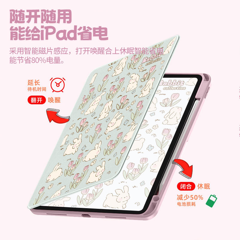 适用iPad10.2保护套笔槽air7/6亚克力11代卡通彩绘pro11旋转mini7