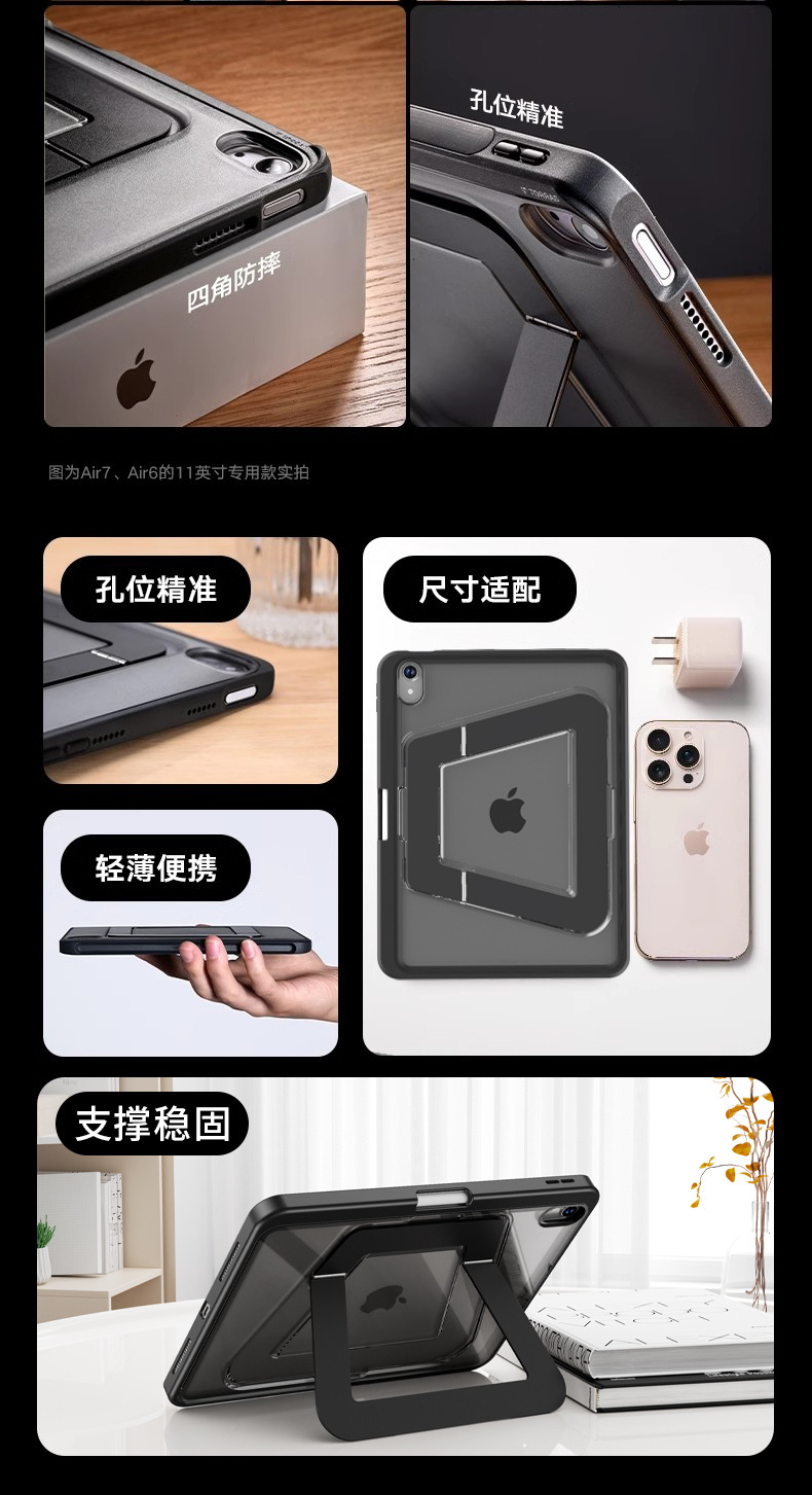 【梯形支点壳】适用ipad11平板套air7笔槽防摔弯10轻薄铝合金支架