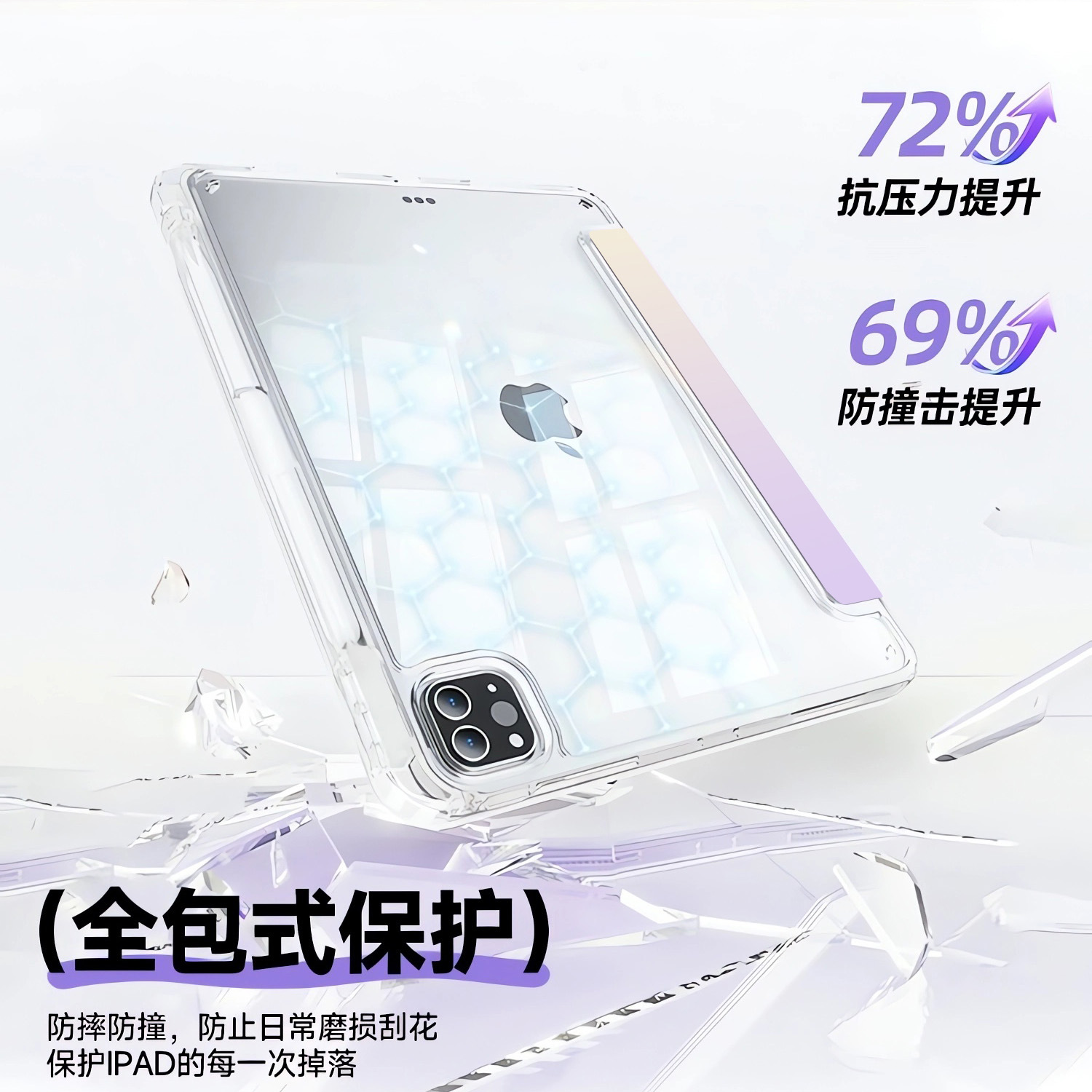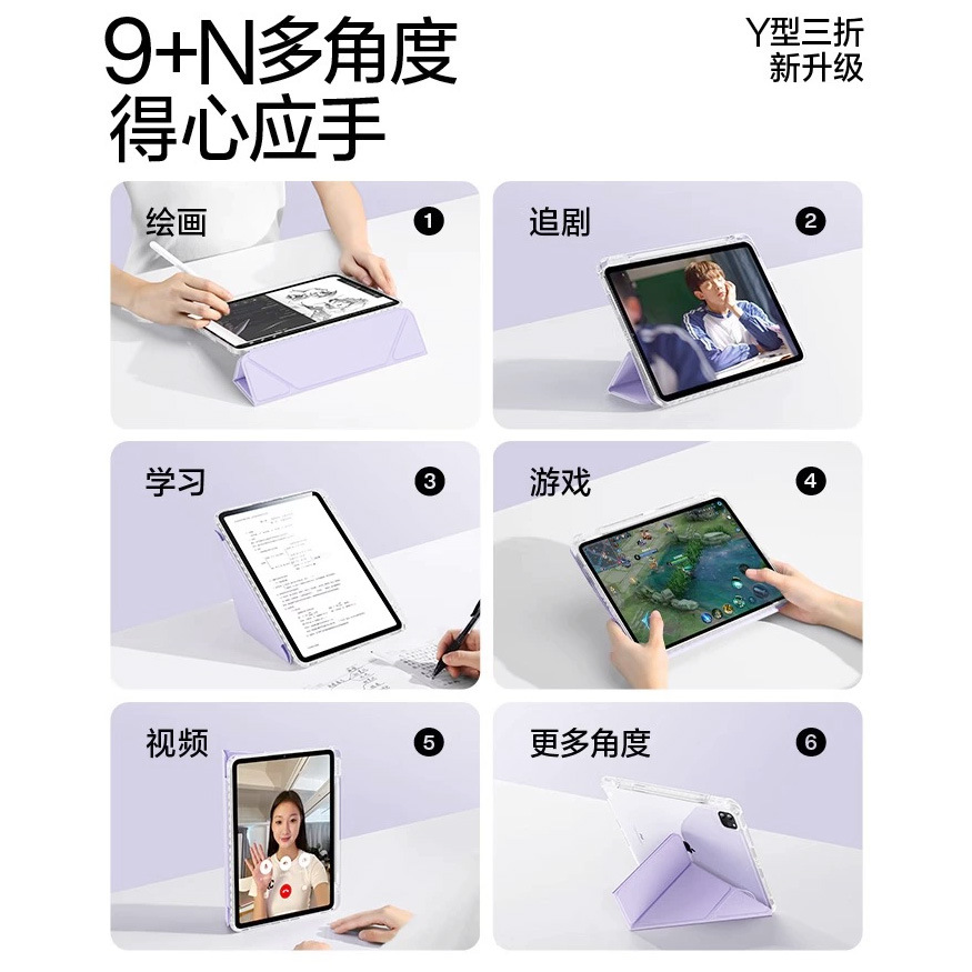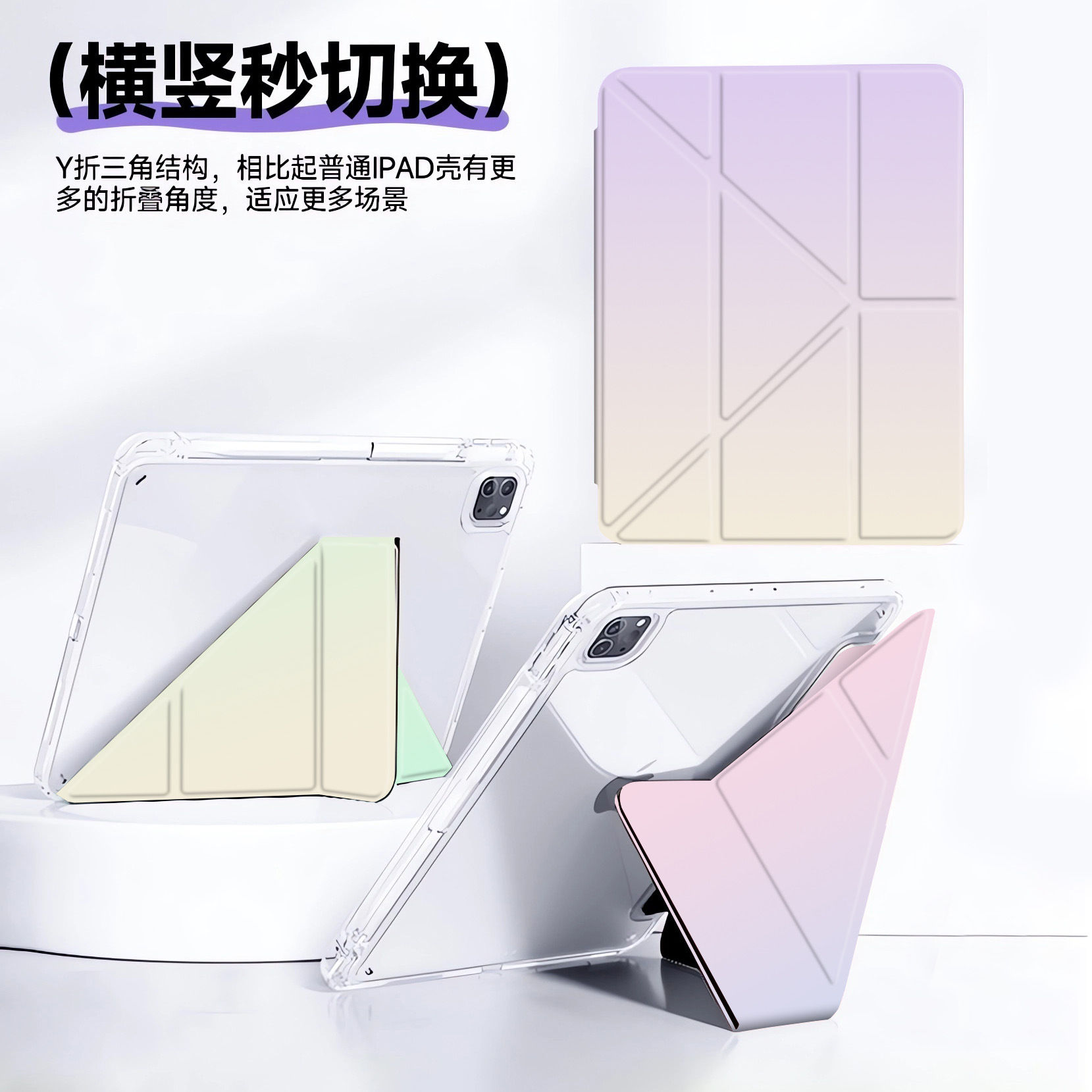 渐变彩绘适用ipad11代平板保护套Y折air6/7百变竖屏9.7笔槽亚克力