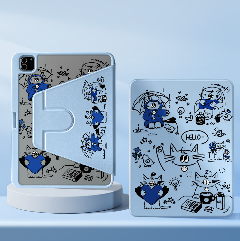 - 线条猫【双面720°旋转-防弯亚克力书本式+笔槽】