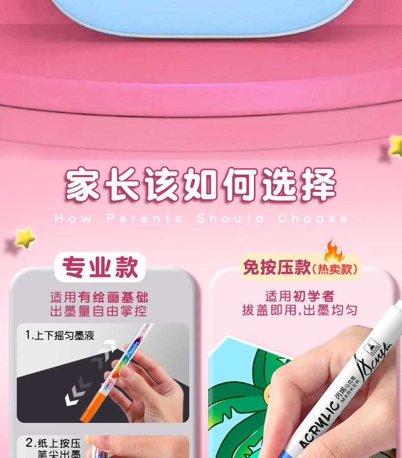 丙烯马克笔可水洗不透色可叠色防水速干手绘diy水彩笔绘画本