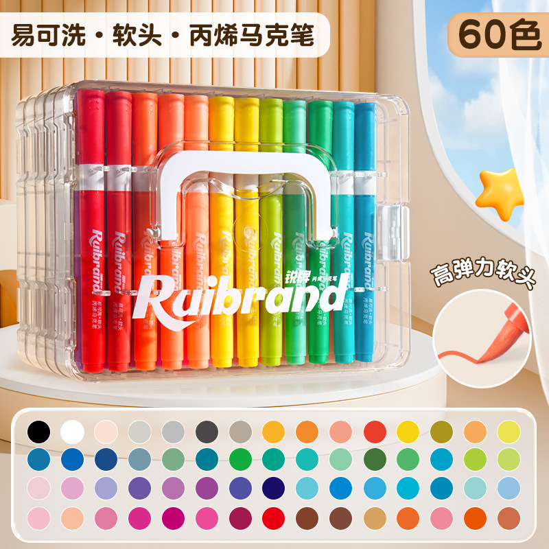 - 60色大容量丙烯马克笔【易可洗环保墨水】