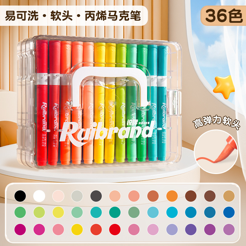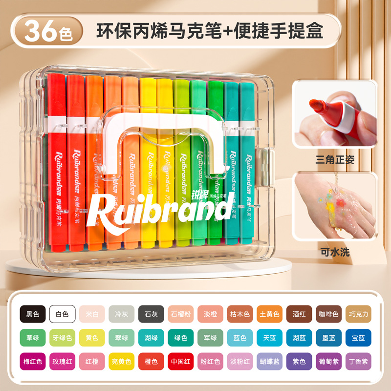 - 36色三角杆正姿丙烯马克笔【易可洗环保墨水】