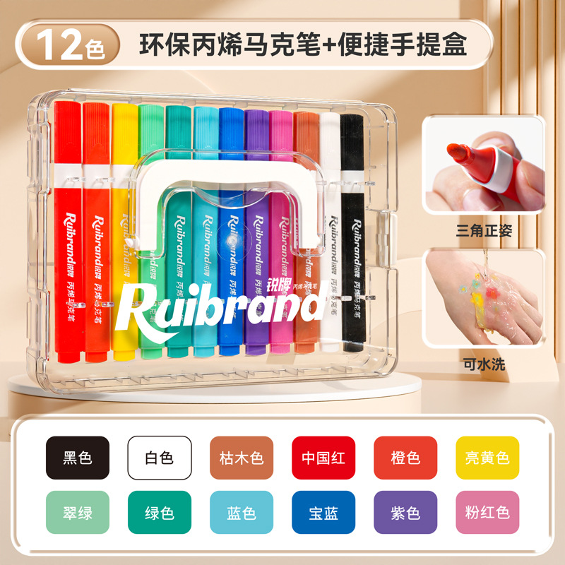 - 12色三角杆正姿丙烯马克笔【易可洗环保墨水】