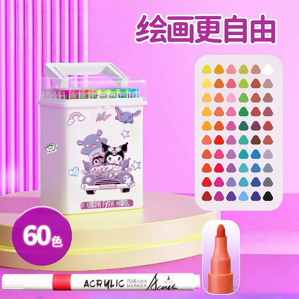 卡通丙烯马克笔小学生美术专用水彩笔不透色可叠色儿童无毒可水洗