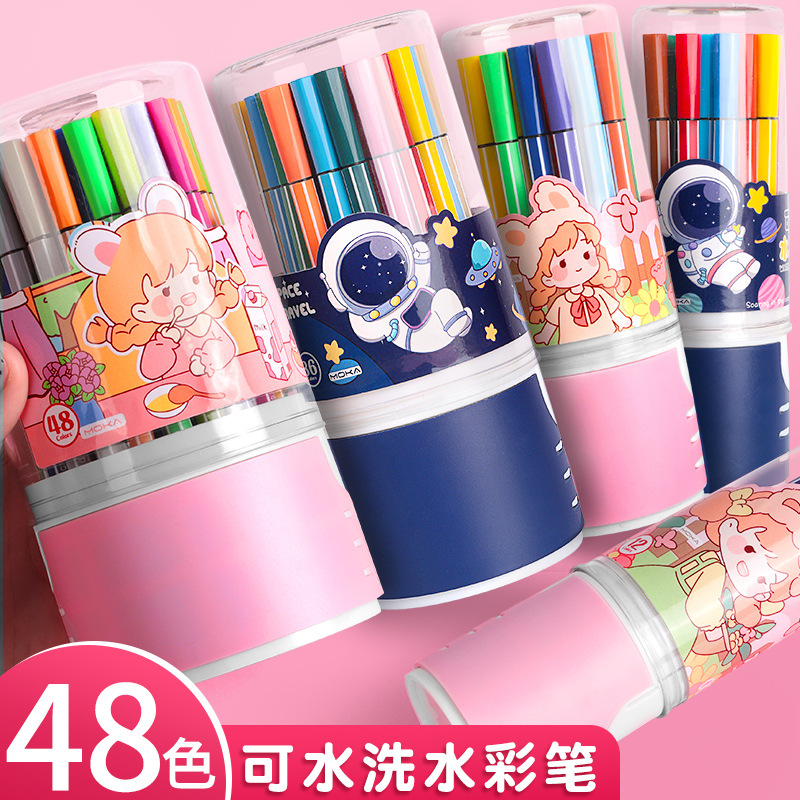 卡通小学生用12色48色水彩笔套装幼儿园大容量可水洗笔美术绘画笔
