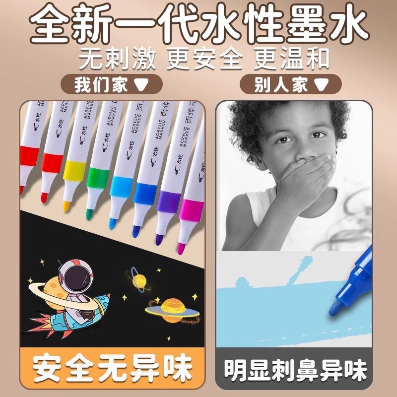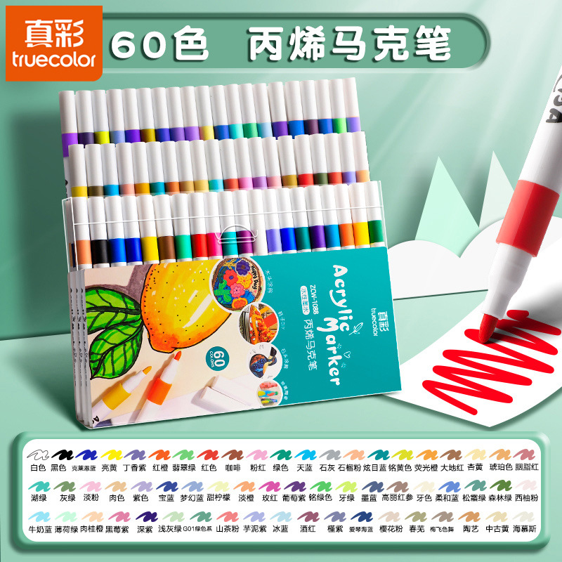 真彩丙烯马克笔 不透色可叠色画笔儿童绘画专用正姿三角杆水彩笔