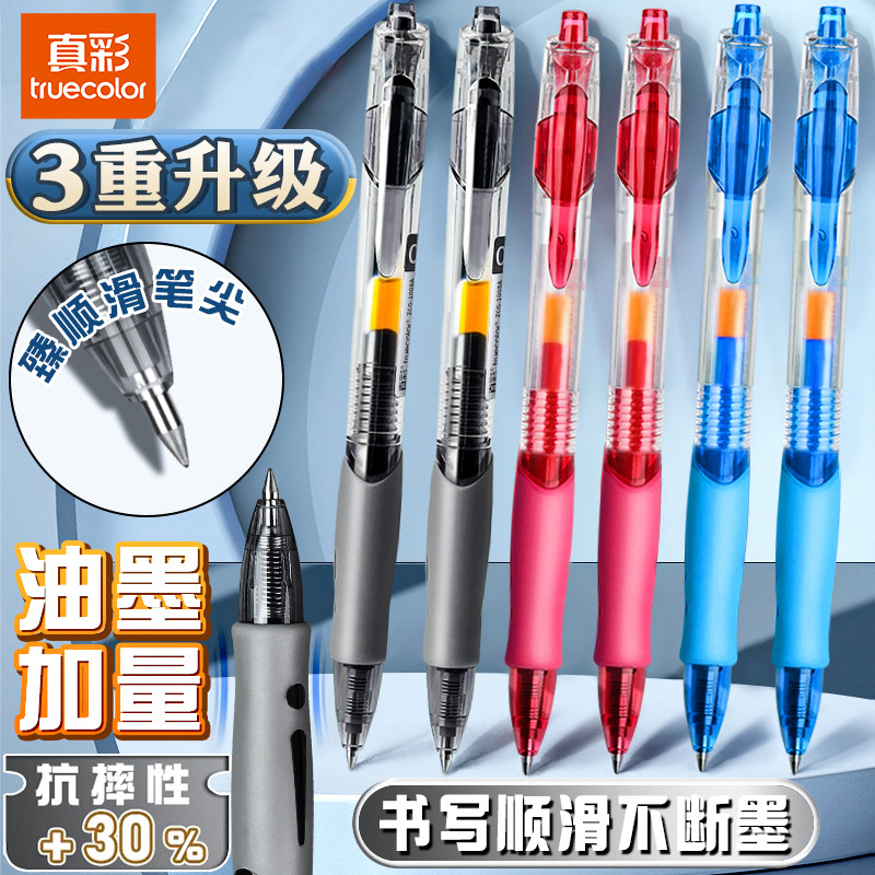 真彩1008新款按动笔速干大容量黑色中性笔0.5mm商务办公签字黑笔