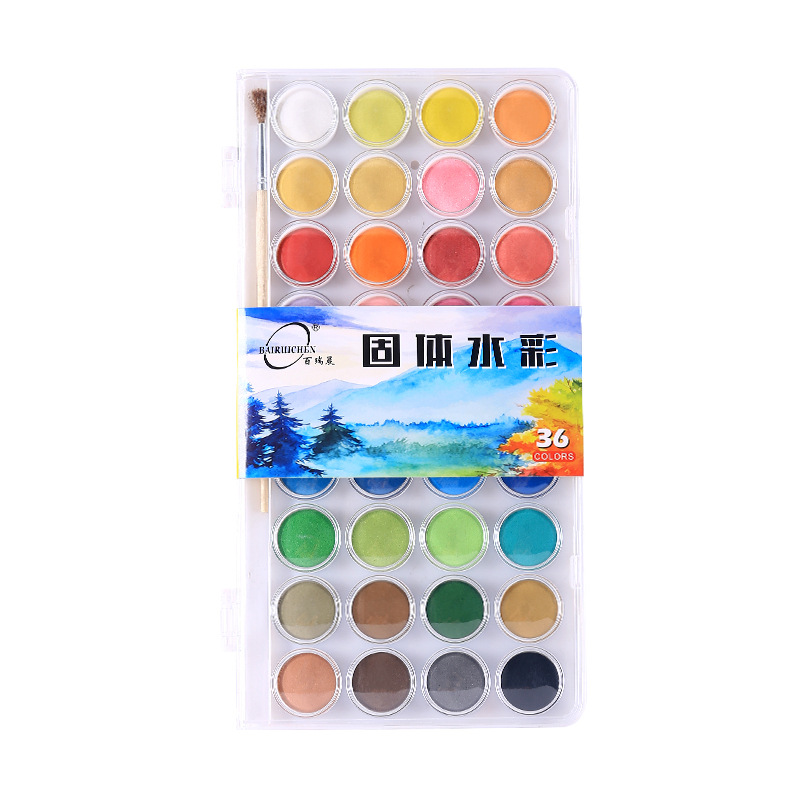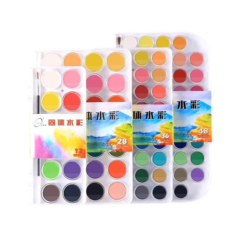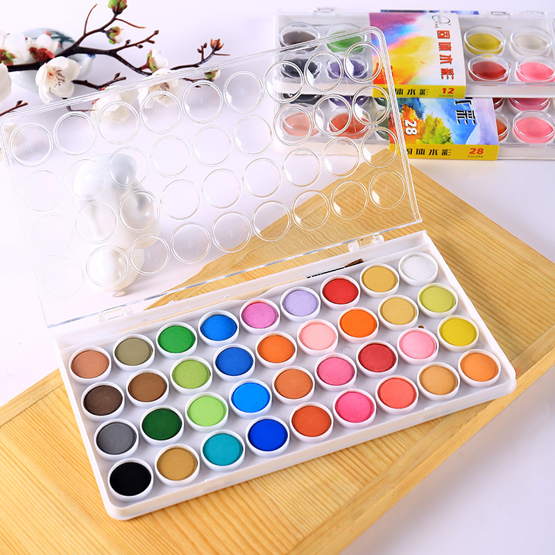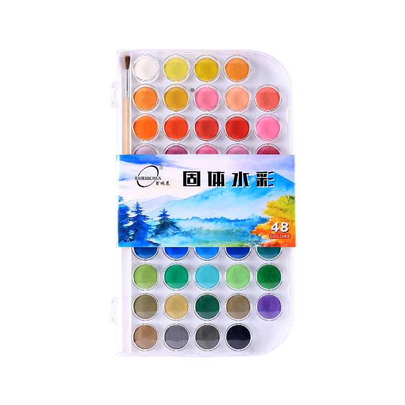 48色初学入门固体水彩颜料粉饼套装美术绘画固体水彩