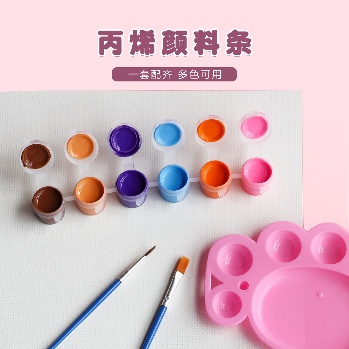儿童丙烯颜料12色套装6连体学生美术画画涂色石膏娃娃颜料条