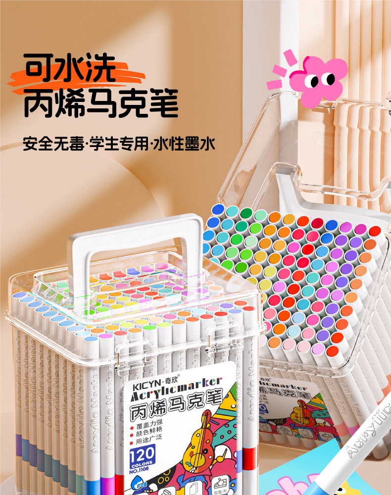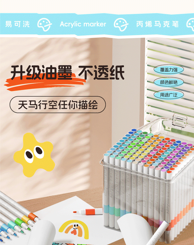 丙烯马克笔可水洗不透色可叠色防水速干手绘diy水彩笔绘画本彩笔